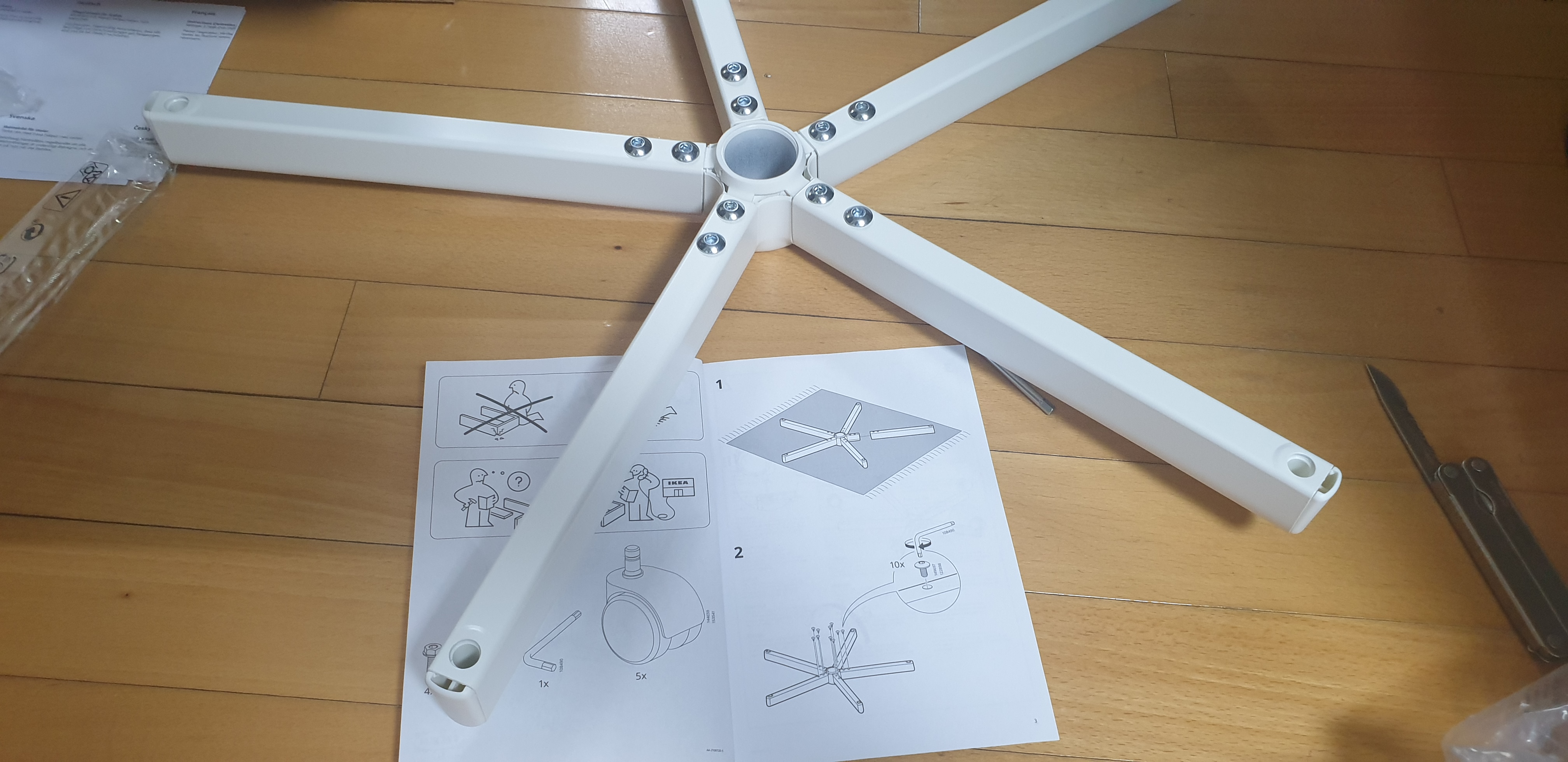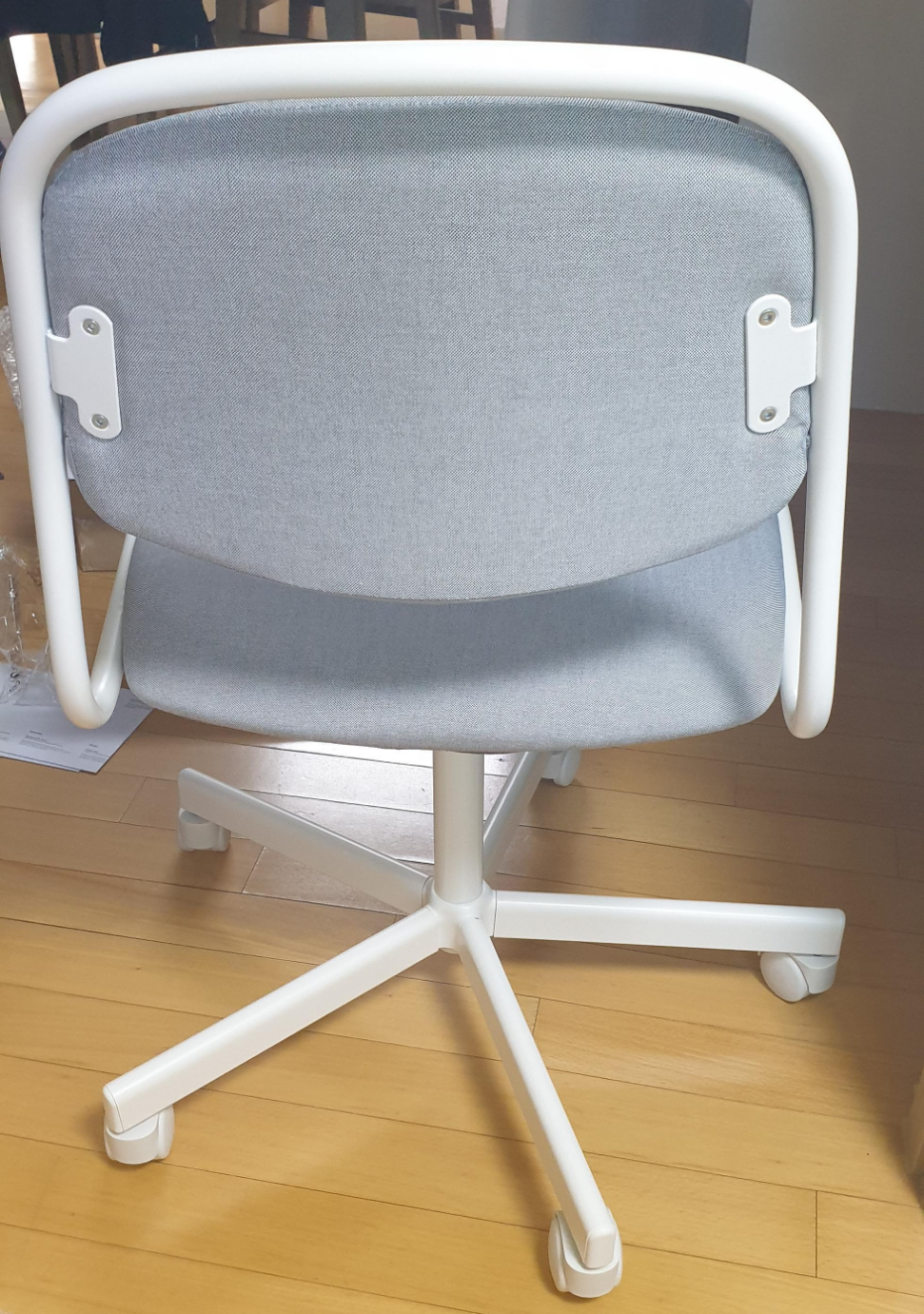 완성을 해보니 좁은 제 컴퓨터 의자로 딱 맞는 크기였습니다. 다만 바퀴가 의도한 건지 뻑뻑하더군요. 바퀴 안 달린 걸로 샀어도 됐을 것 같은 기분... 의자가 가벼워서 그냥 밀리는데 약간 마트 카트 바퀴 반대로 미는 느낌이 드는 것 같습니다.