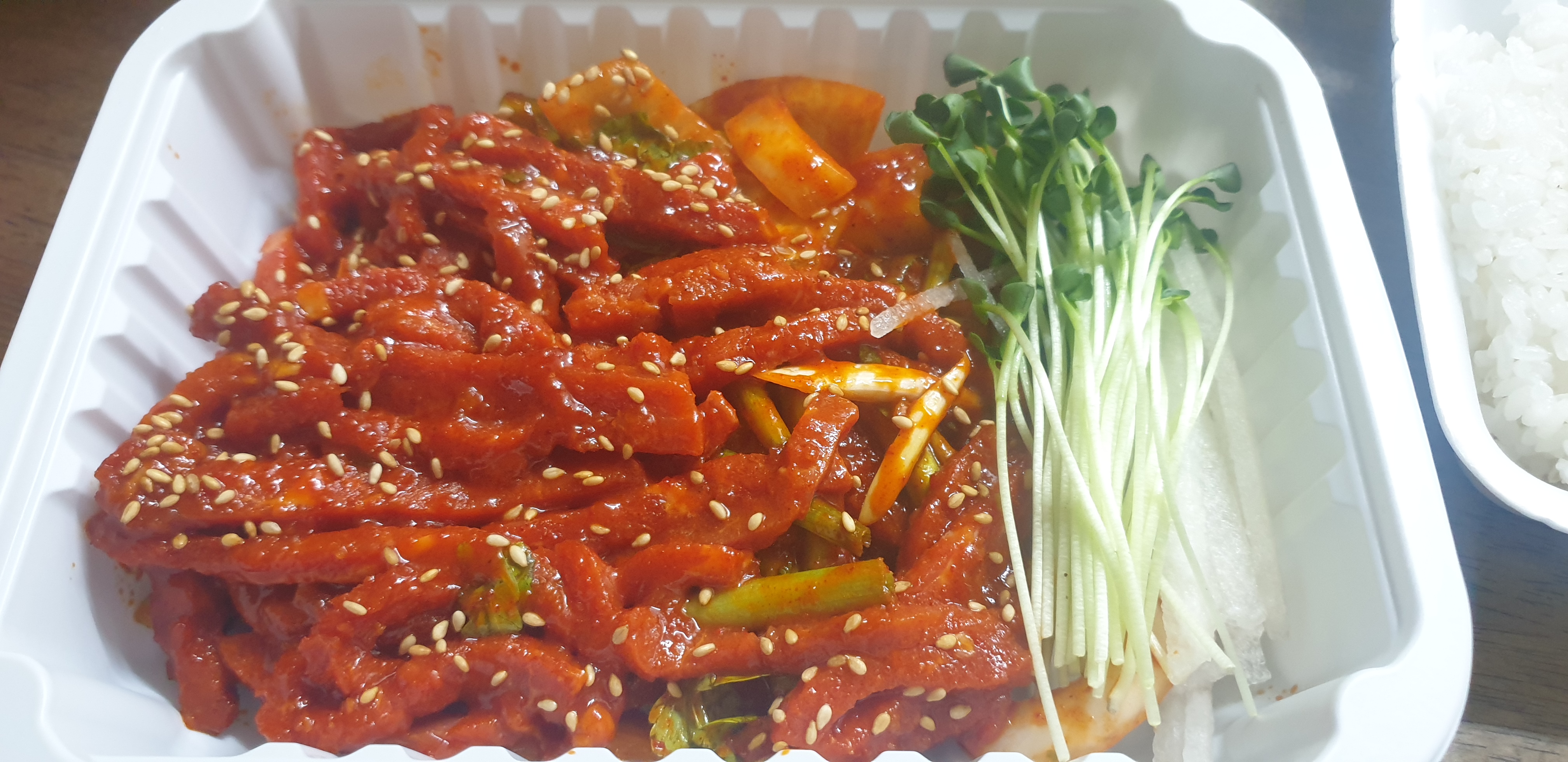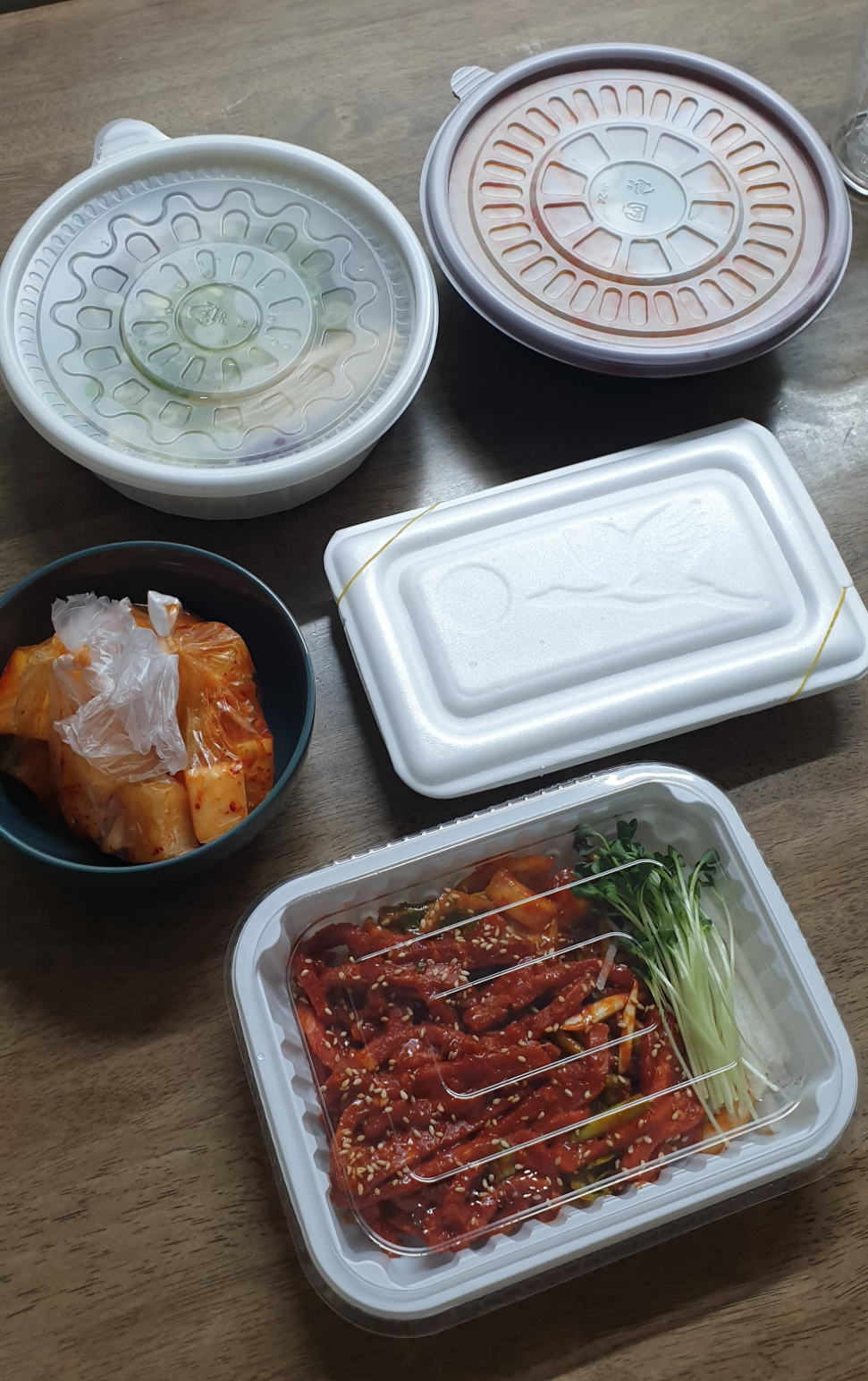 깍두기와 밥과 국 이렇게 포장해 주셨네요.