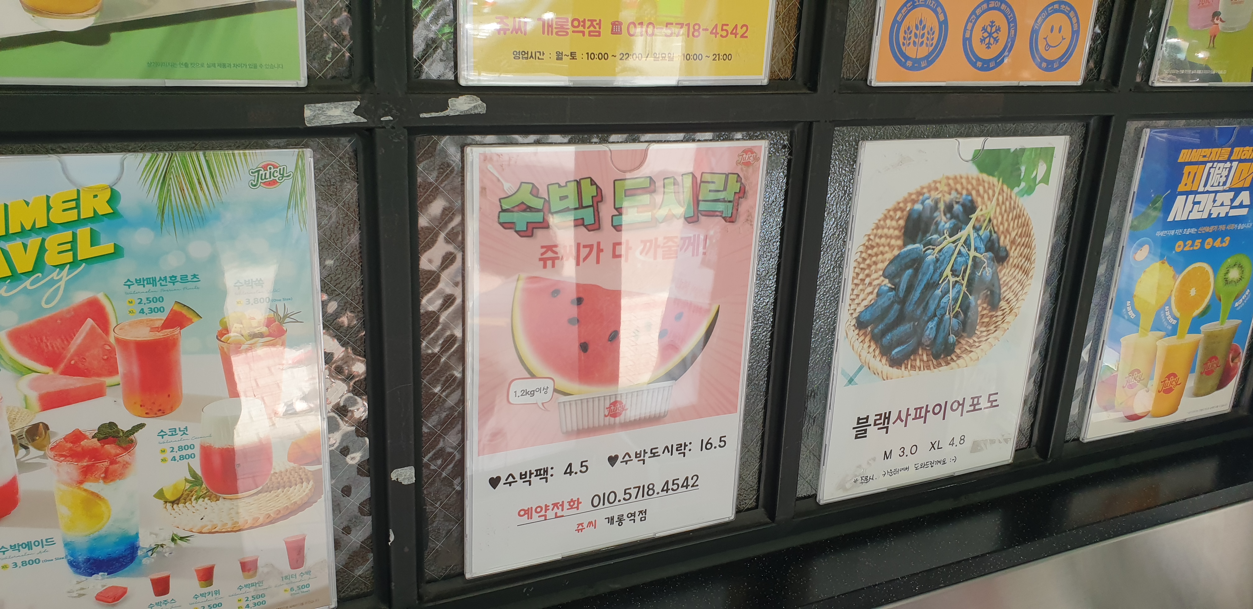 지난 토요일 정보처리기사 실기 시험을 보고(시험은 망쳤지만...) 집에 가는 중 쥬시가 보였고, 작년에 수박 철 막바지에 사보려고 하다가 수박이 안 달아서 안 판다고 못 사본 수박 도시락 예약을 받는다는 내용을 보고 아 이번에 한번 사볼까? 하고 구매해봤습니다.