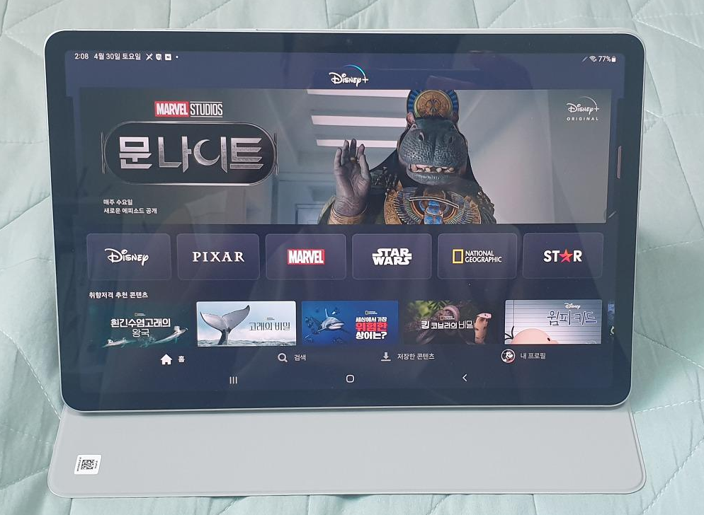 태블릿을 세워서 영상 같은 것을 볼 때 편하게 볼 수 있네요. 각도도 케이스에 홈이 살짝 있어서 조절이 가능하네요.