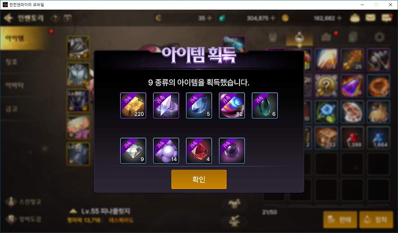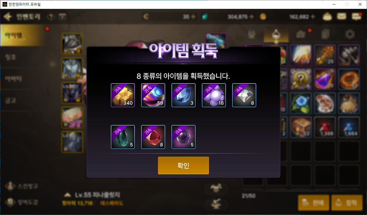 던파 모바일에서 원정을 보내면 얻을 수 있는 초원의 보물 어느새 200개 조금 넘게 모여서 200개만 열어봤습니다.