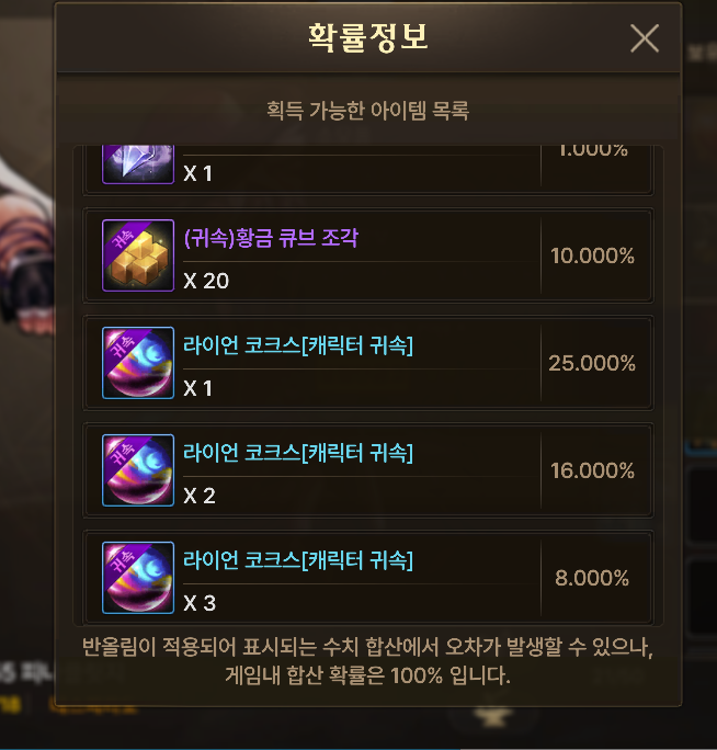 나오는 아이템은 보석들과 변환석, 황금 큐브 조각 그리코 라코가 나오네요. 사실 뭐가 나와야 꽝이고 성공이다... 할만한 품목은 없는 것 같습니다.