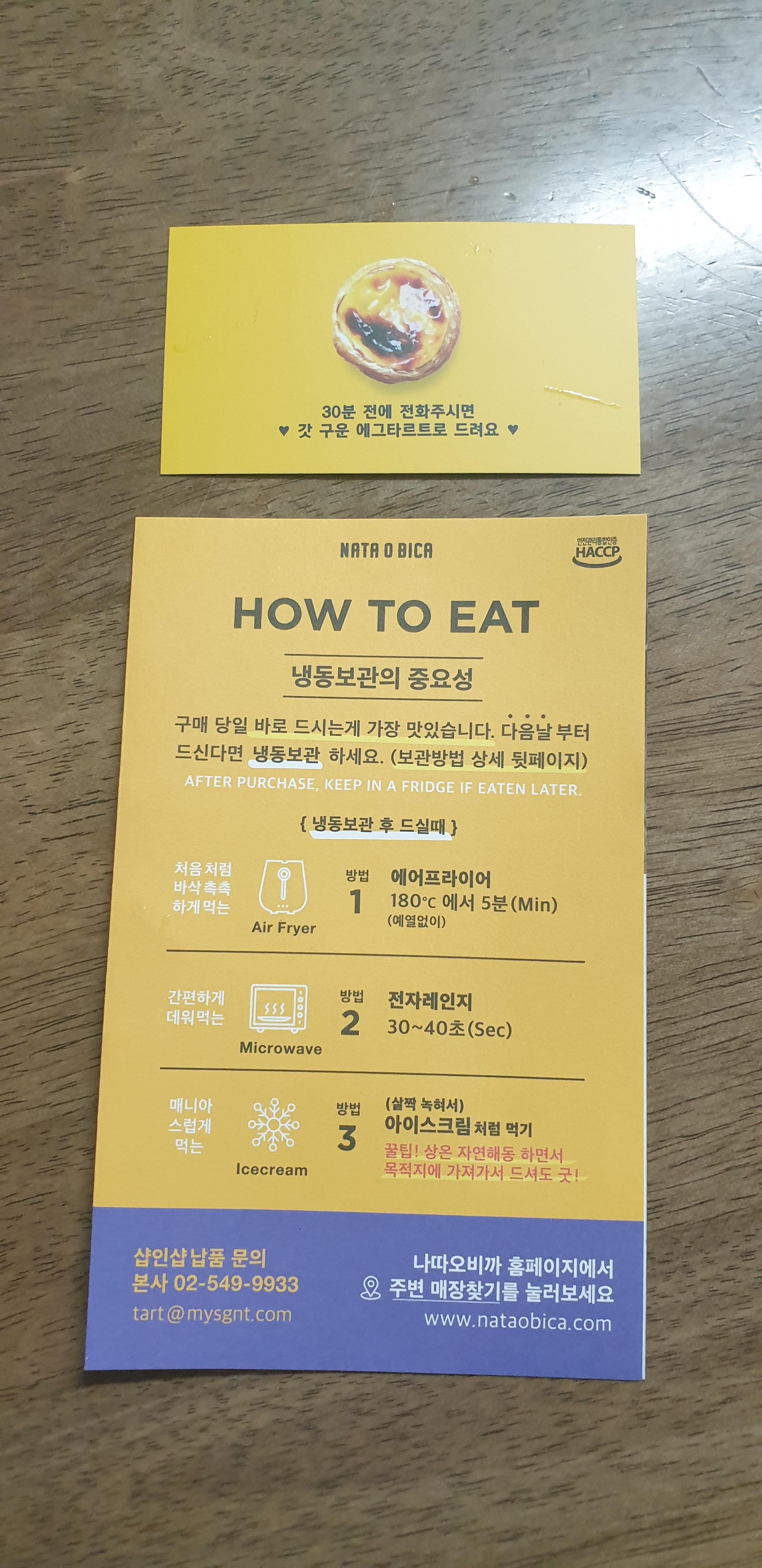 이 박스 낫설지가 않습니다. 가든파이브 지하 1층에 있는 카페에서 파는 에그타르트도 이 상자에 포장해주던 걸로 기억하고 있어요. 나따오비까가 여러 카페에서 연계해서 장사를 하는 것 같네요.