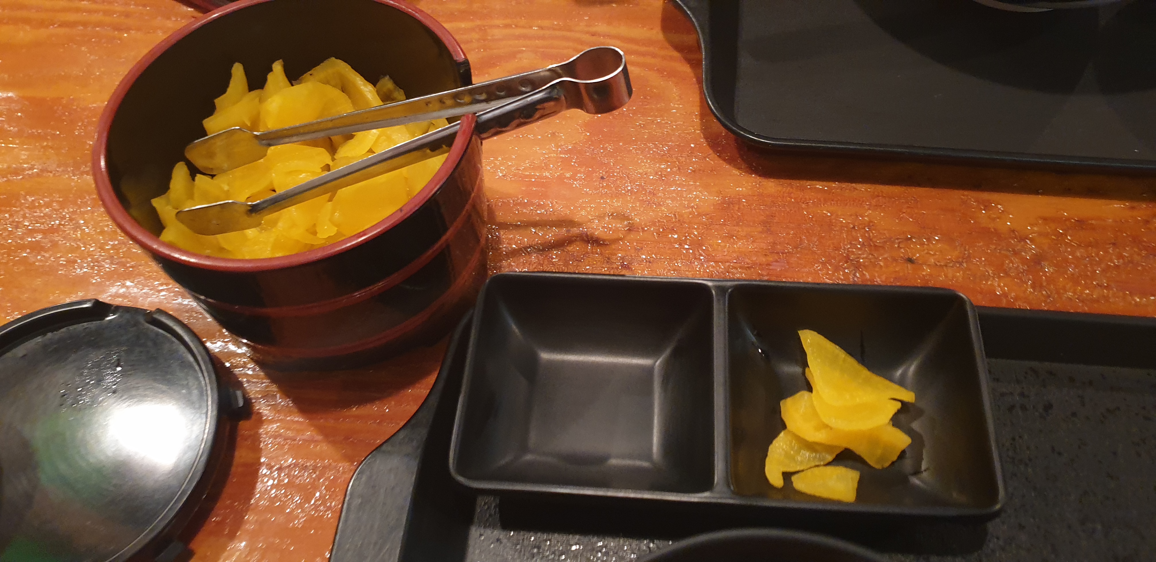 음식과 같이 나온 그릇은 공간이 두 갠데... 깍두기도 개인 접시에 옮기라는 의미인지 다른 반찬이 있던 건지는 모르겠네요.