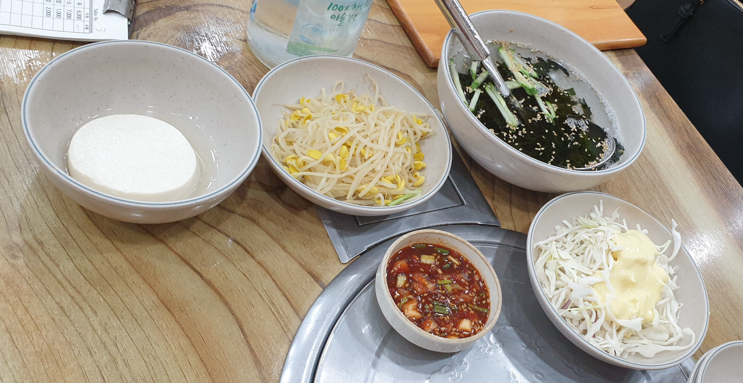 메뉴판에는 김치 국내산이라고 표기되어있는데 반찬으로 김치는 없네요. 셀프코너라고 있지만 그곳에도 김치는 없었습니다.