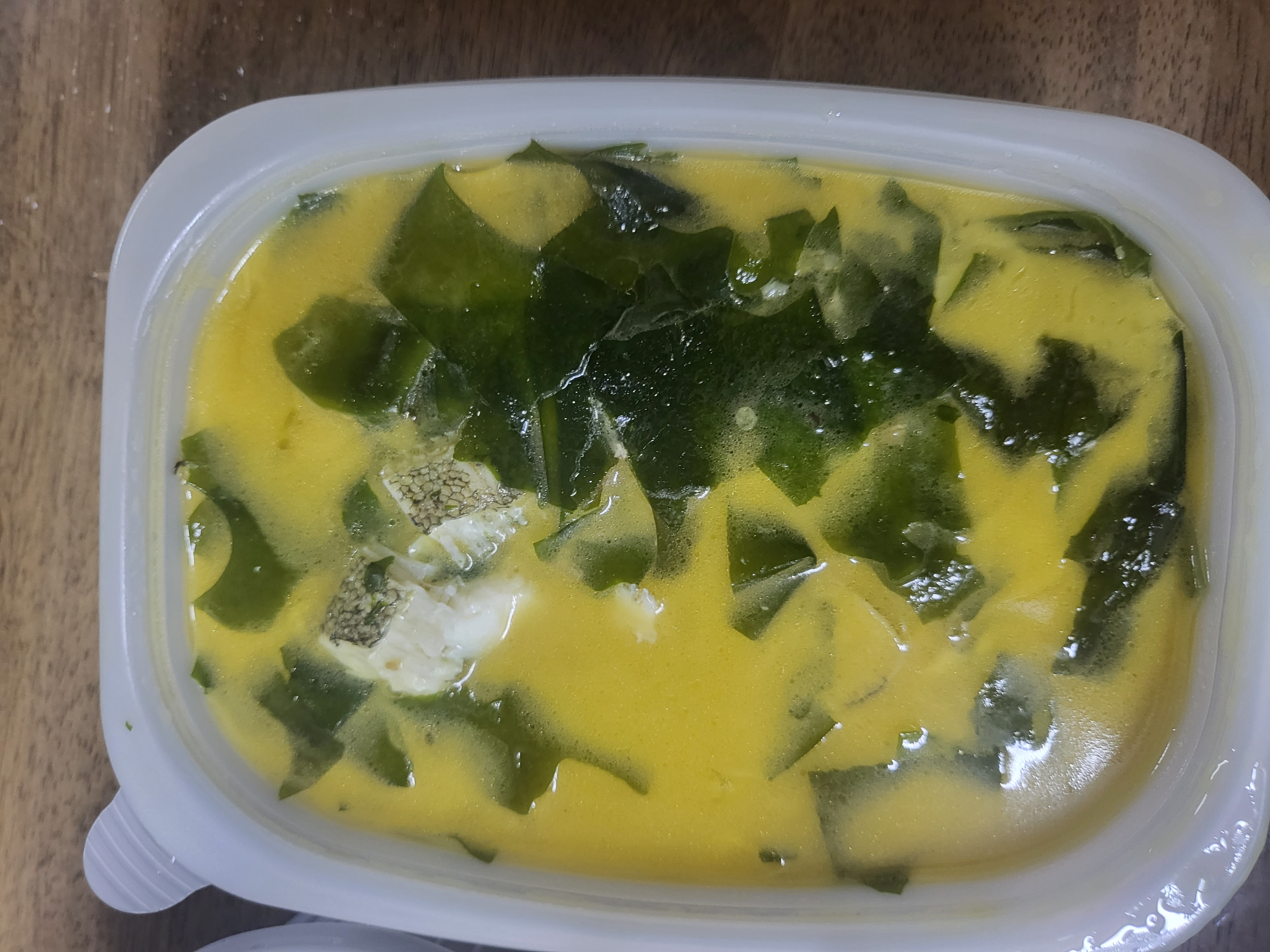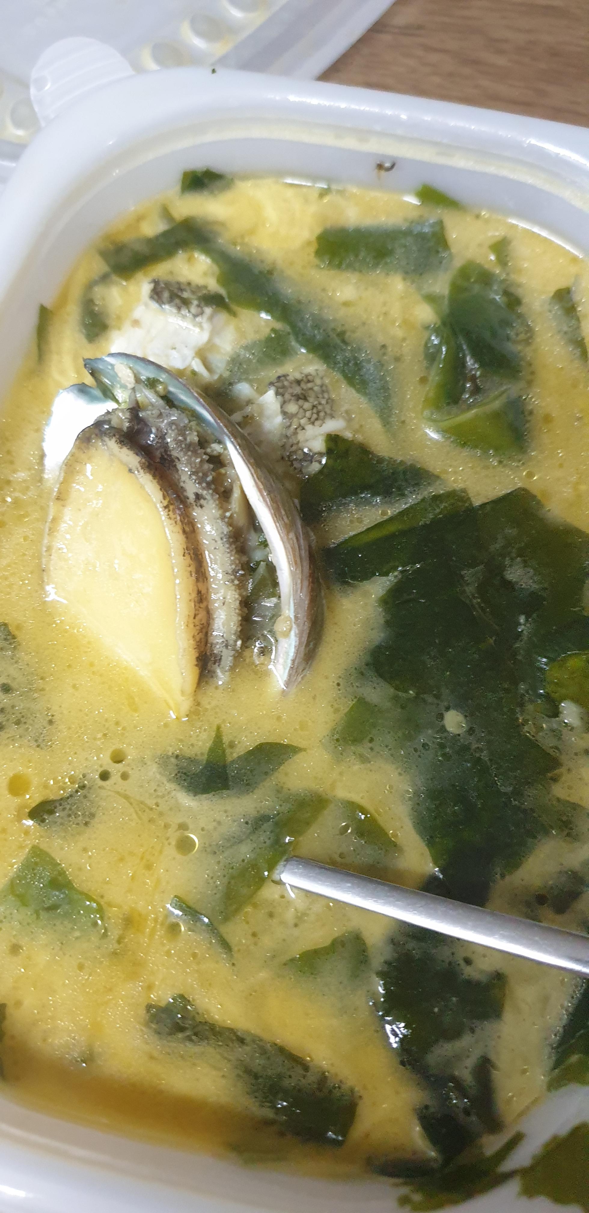 가자미가 들어가 있어서 그런지 국물 색상이 일반적인 미역국보다 진해 보이네요.