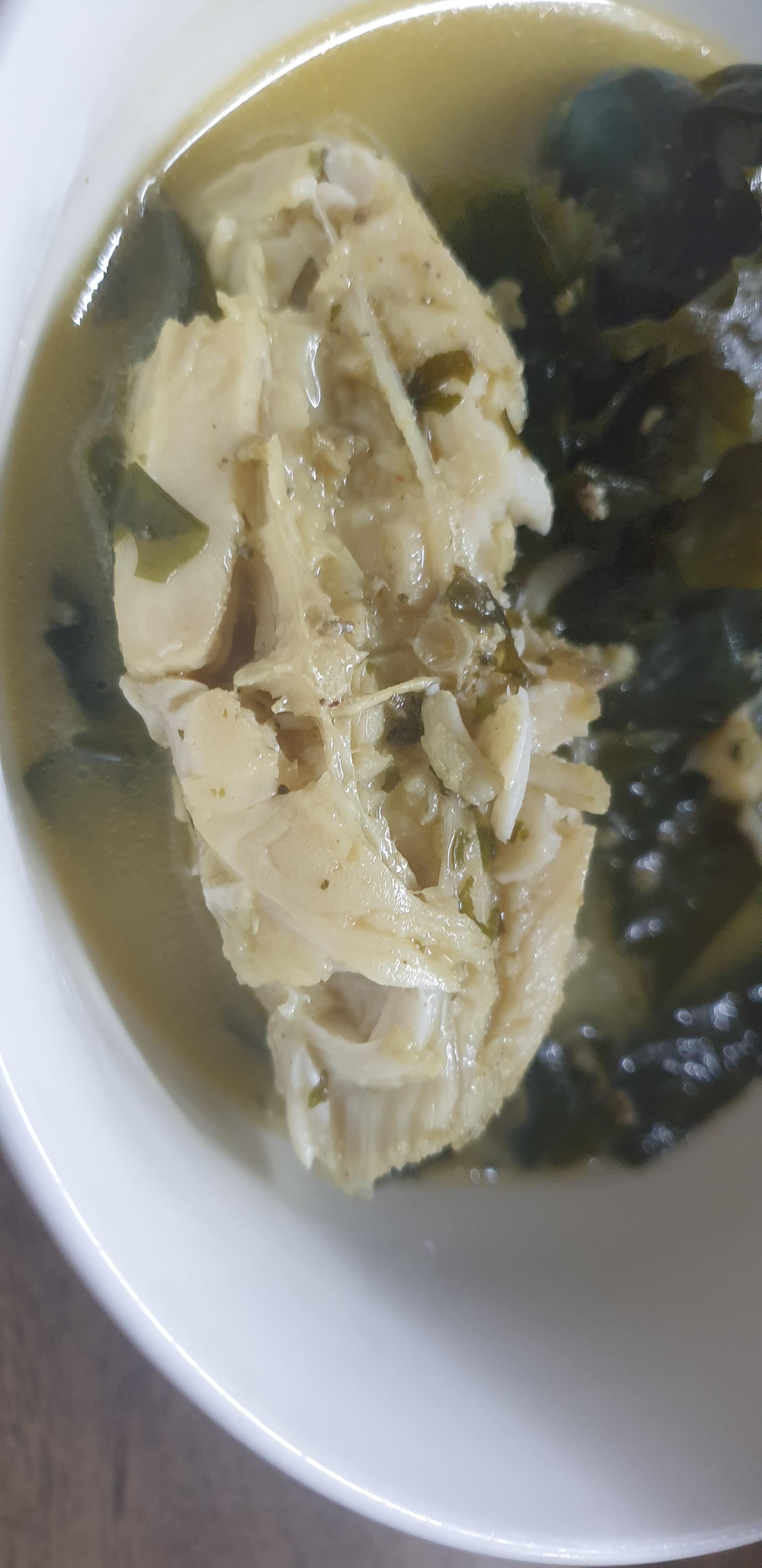 가자미가 들어가 있어서 그런지 국물 색상이 일반적인 미역국보다 진해 보이네요.