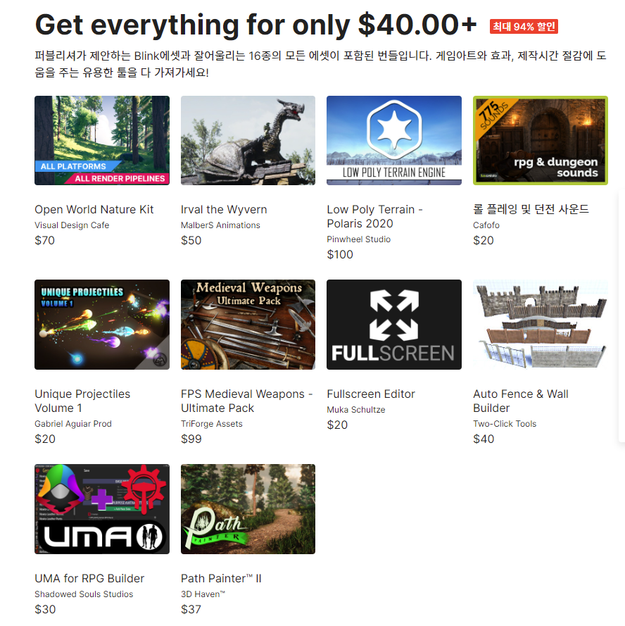 Blink의 에셋을 50% 할인된 가격에 만나보세요. 퍼블리셔가 추천하는 함께 사용하기 좋은 에셋을 모아 구성한 메가번들도 살펴보세요!