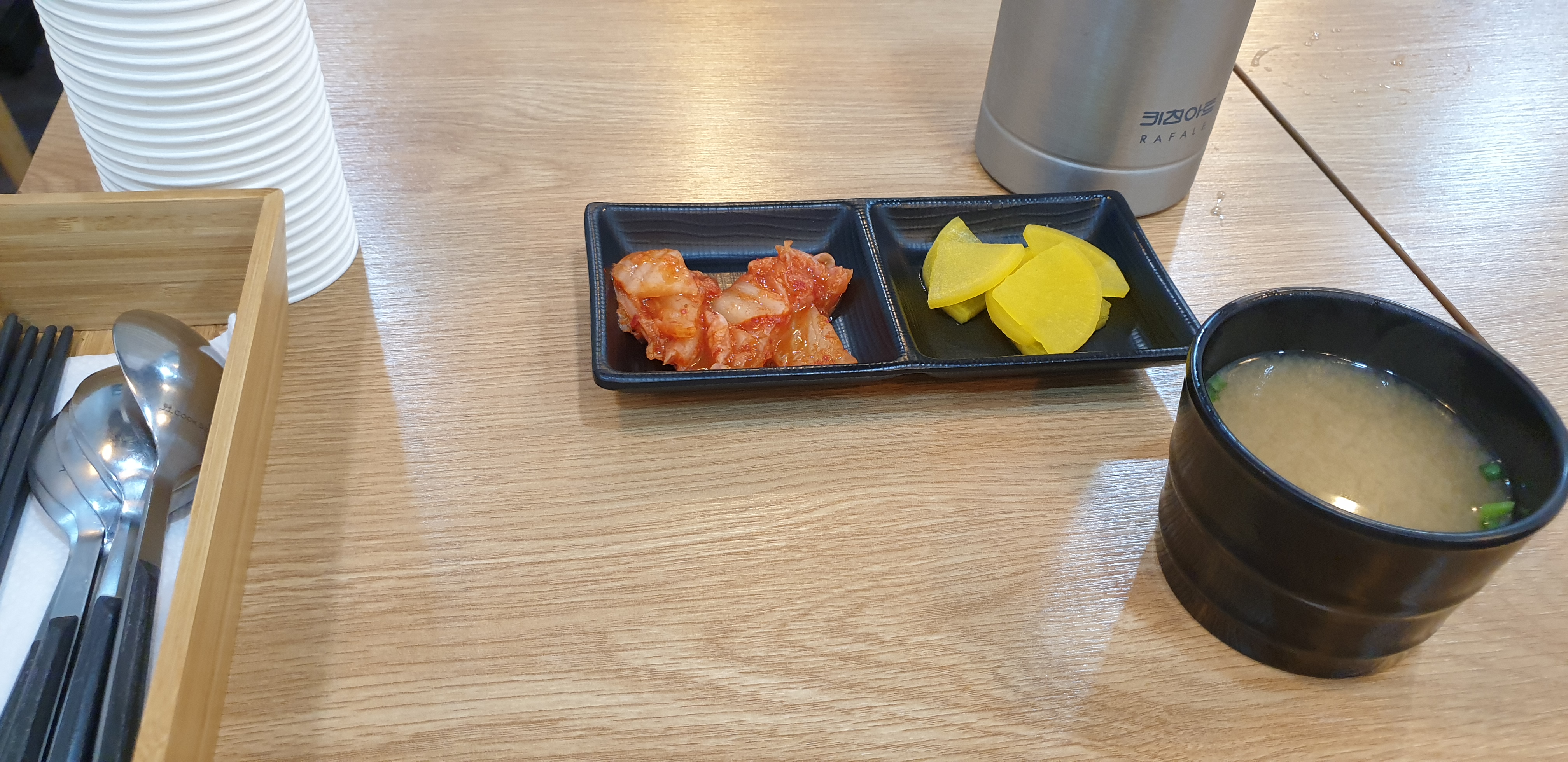 김치는 좀 많이 신맛이었습니다. 단무지는 그냥 단무지 장국은 조금 진하더군요.