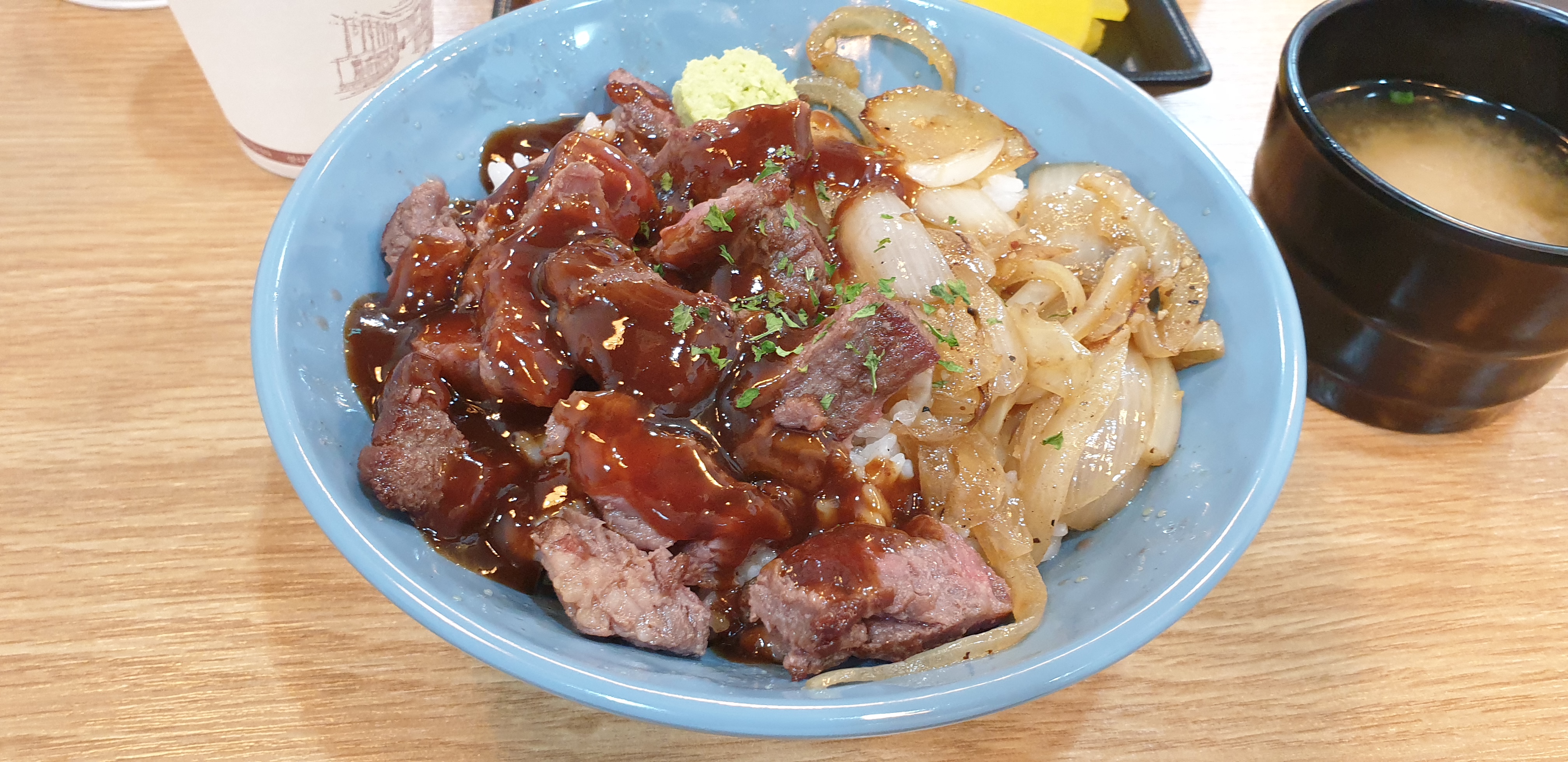 정리하면 스테이크 덮밥은 맛있었으나 양파가 더 많았으면 좋았을 것 같습니다.