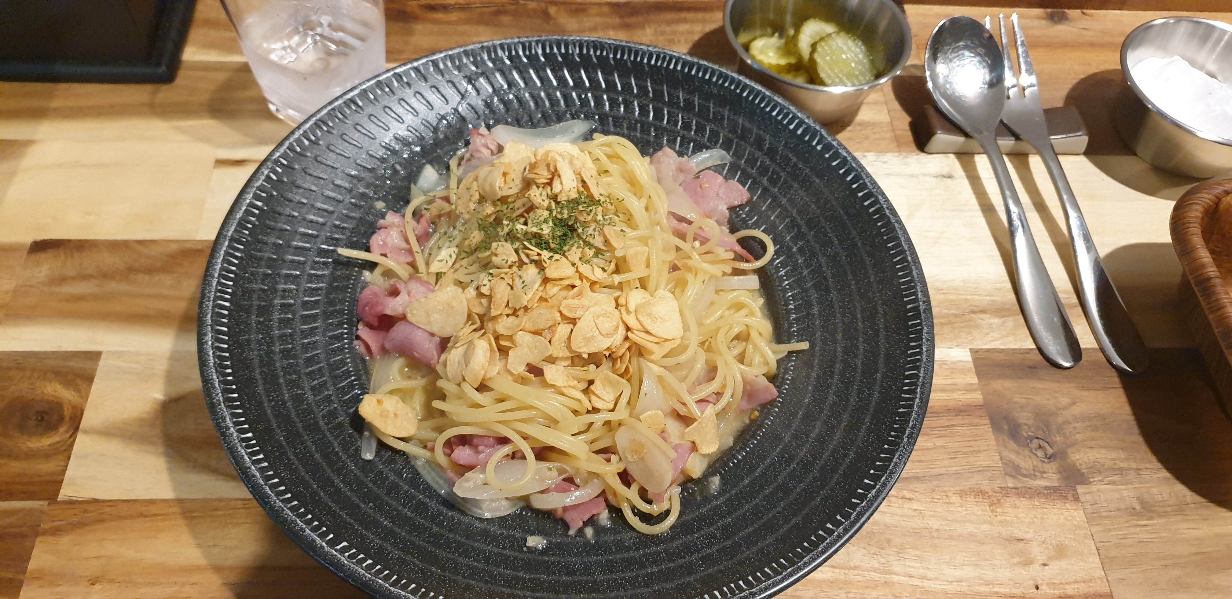 저번엔 명란 씨푸드 오일을 먹었기 때문에 이번엔 해물이 아닌 갈릭 베이컨 오일 파스타를 주문했습니다.