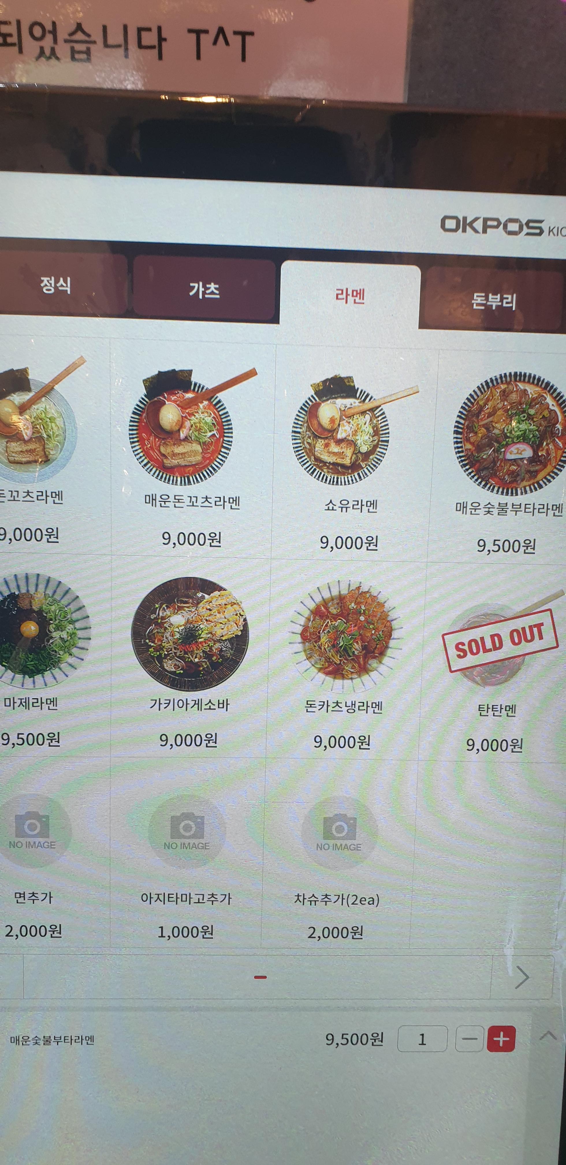 메뉴가 엄청 다양하지만 치킨난반 정식과 라멘 중에 고민하다가 매운 숯불 부타 라멘(9,500원)을 먹었습니다.