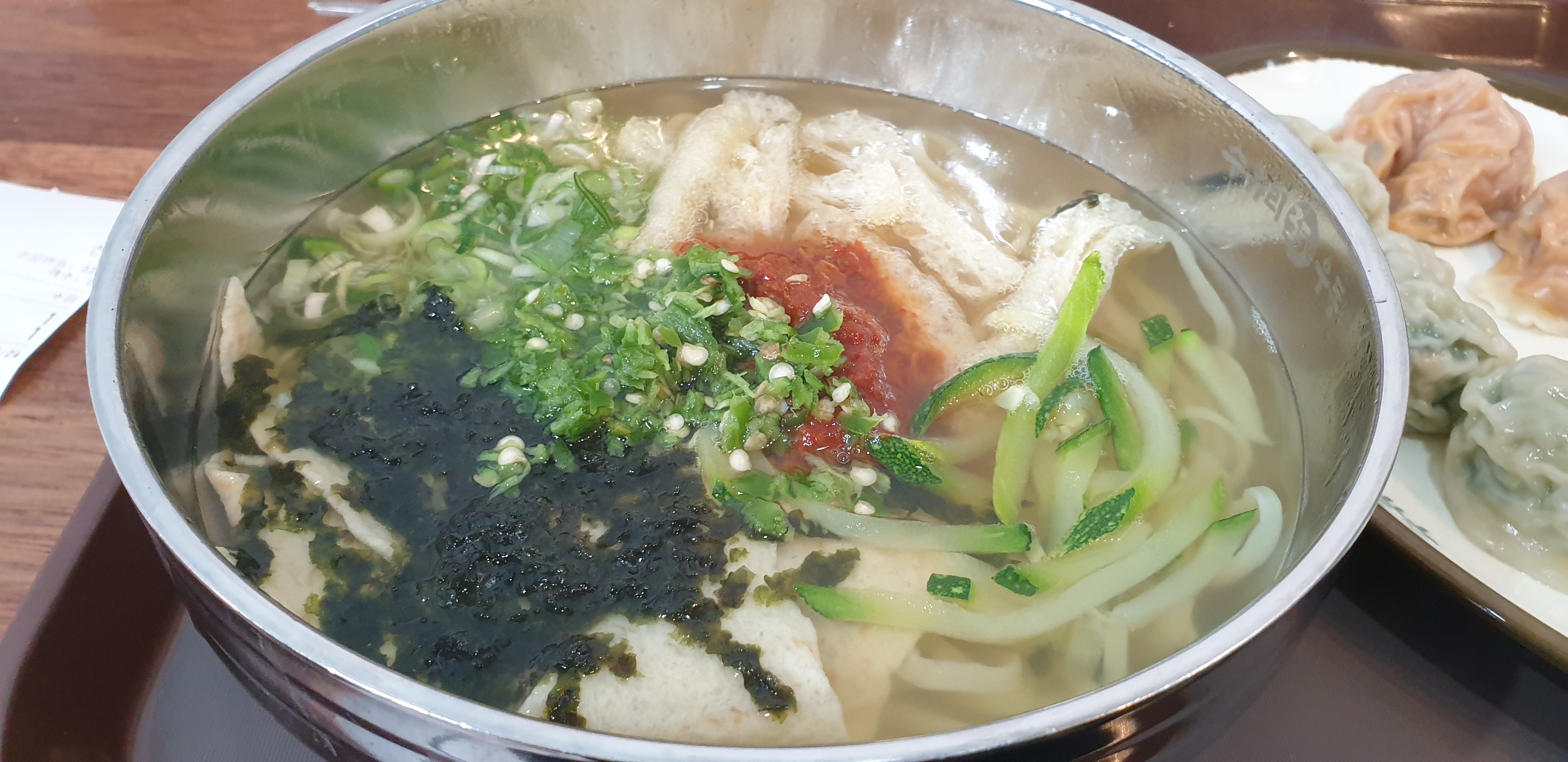 나머지가 다 셀프이기 때문에 쟁반에 딱 우동과 만두만 나오더군요.