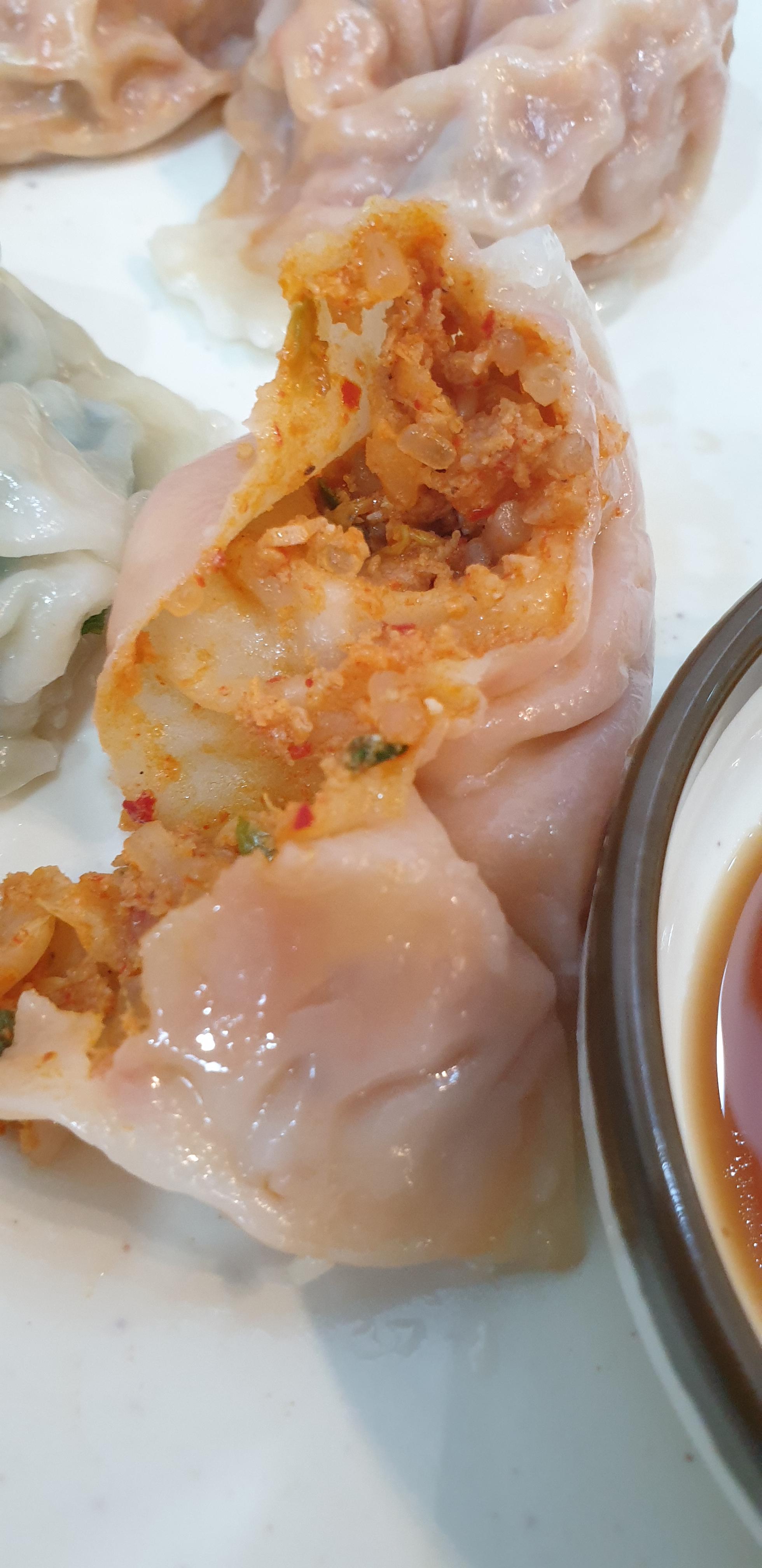 먹어보니 고기만두 3개, 김치만두 3개였네요. 다른 식당에서 만두 먹는 가격 생각하면 가격은 좋은 것 같았습니다.