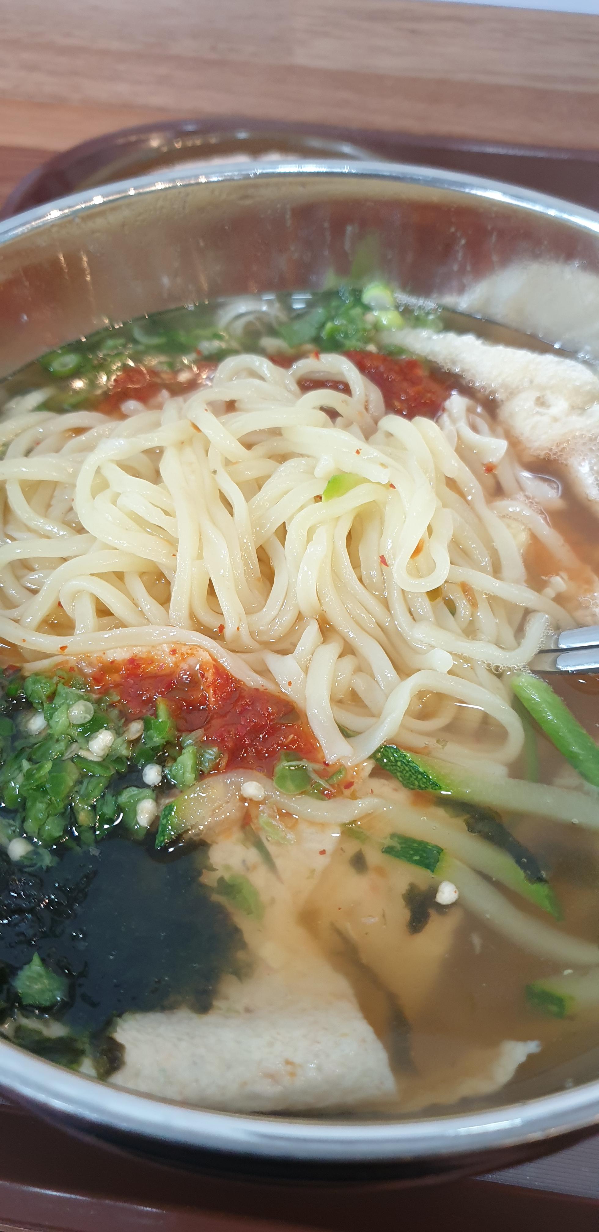 가는 우동면은 호불호가 있을 것 같습니다. 개인적으로 맛있게 먹었지만 면이 좀 더 두꺼웠다면 좋았을 것 같아요. 가락국수 느낌이 덜 나더군요. 그리고 1000원 더내고 굳이 얼큰우동을 먹을 만한 맛은 아니었던 것 같습니다. 그냥 일반 우동과 양념과 고추 차이밖에 없는 것 같은데 엄청 맵지는 않아서 다음에 먹는다면 일반 우동을 먹을 것 같네요.