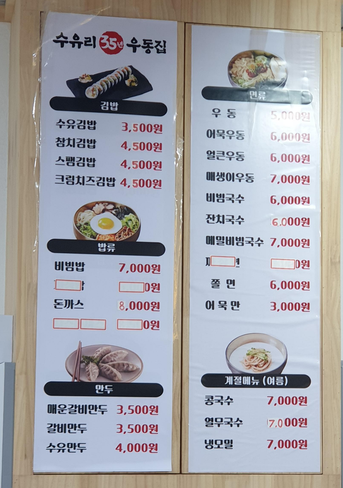 저는 얼큰우동(6,000원)과 수유 만두(4,000원)를 주문했습니다.