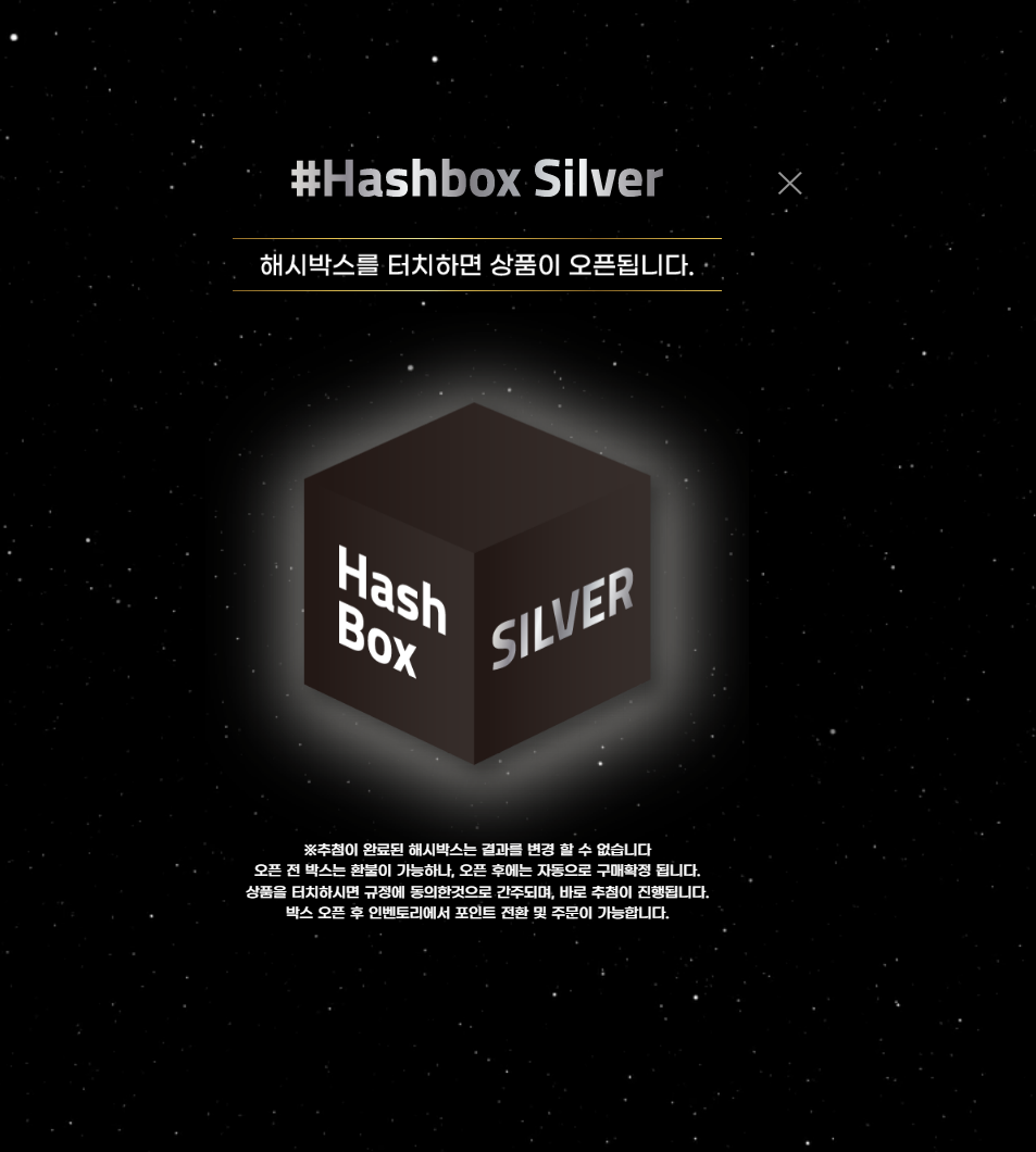 예전에 한번 시도했다가 결국 실망과 그럼 그렇지...라는 생각으로 아무것도 못 얻은 해시박스(2022.07.21 - [리뷰/랜덤박스] - 해시박스 몬스터 실버, 브론즈 랜덤박스 후기)... 그때 마지막 남은 뒤