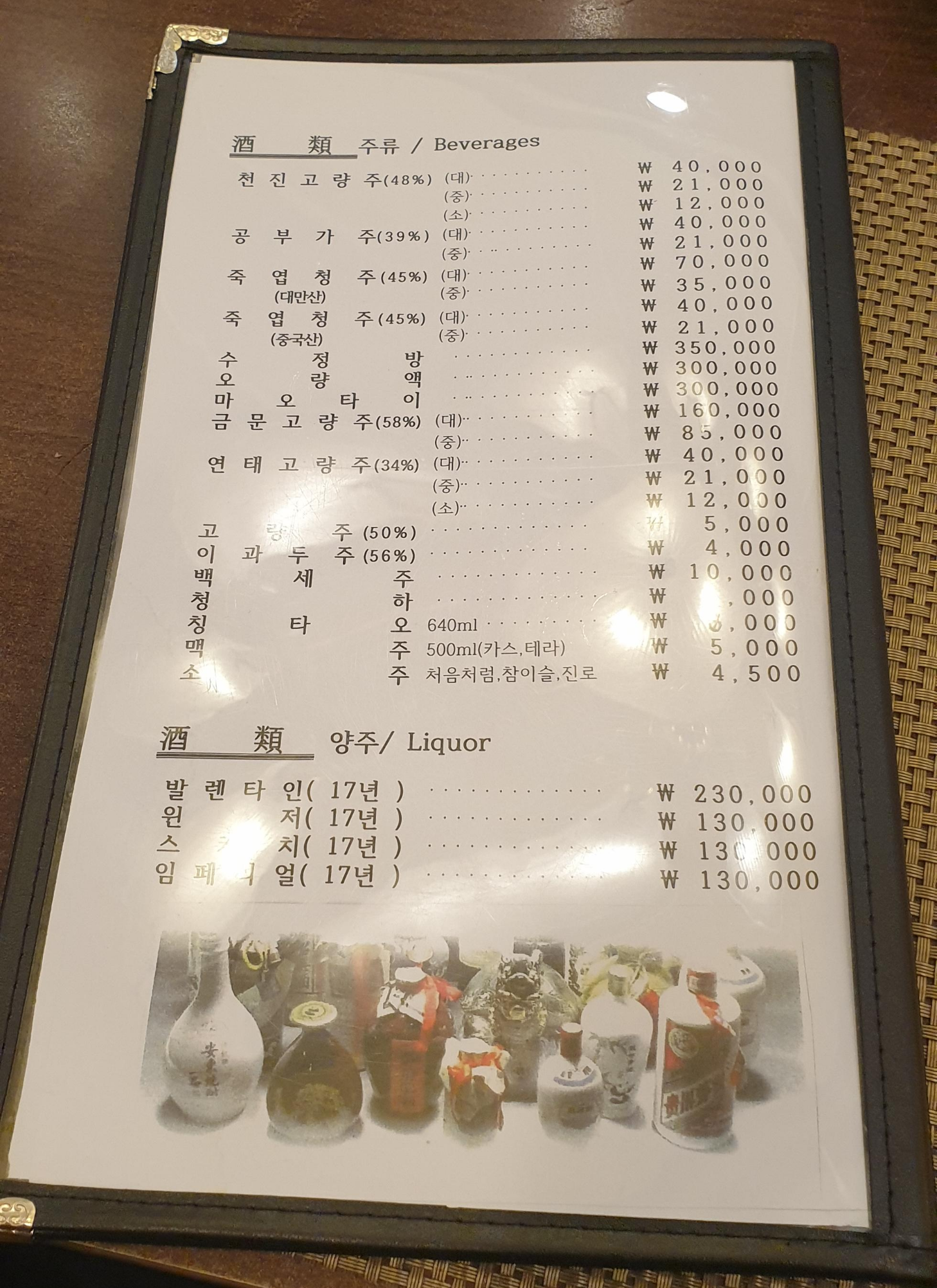 그나저나 중국집인데 발렌타인 같은 양주도 파는 게 신기합니다.