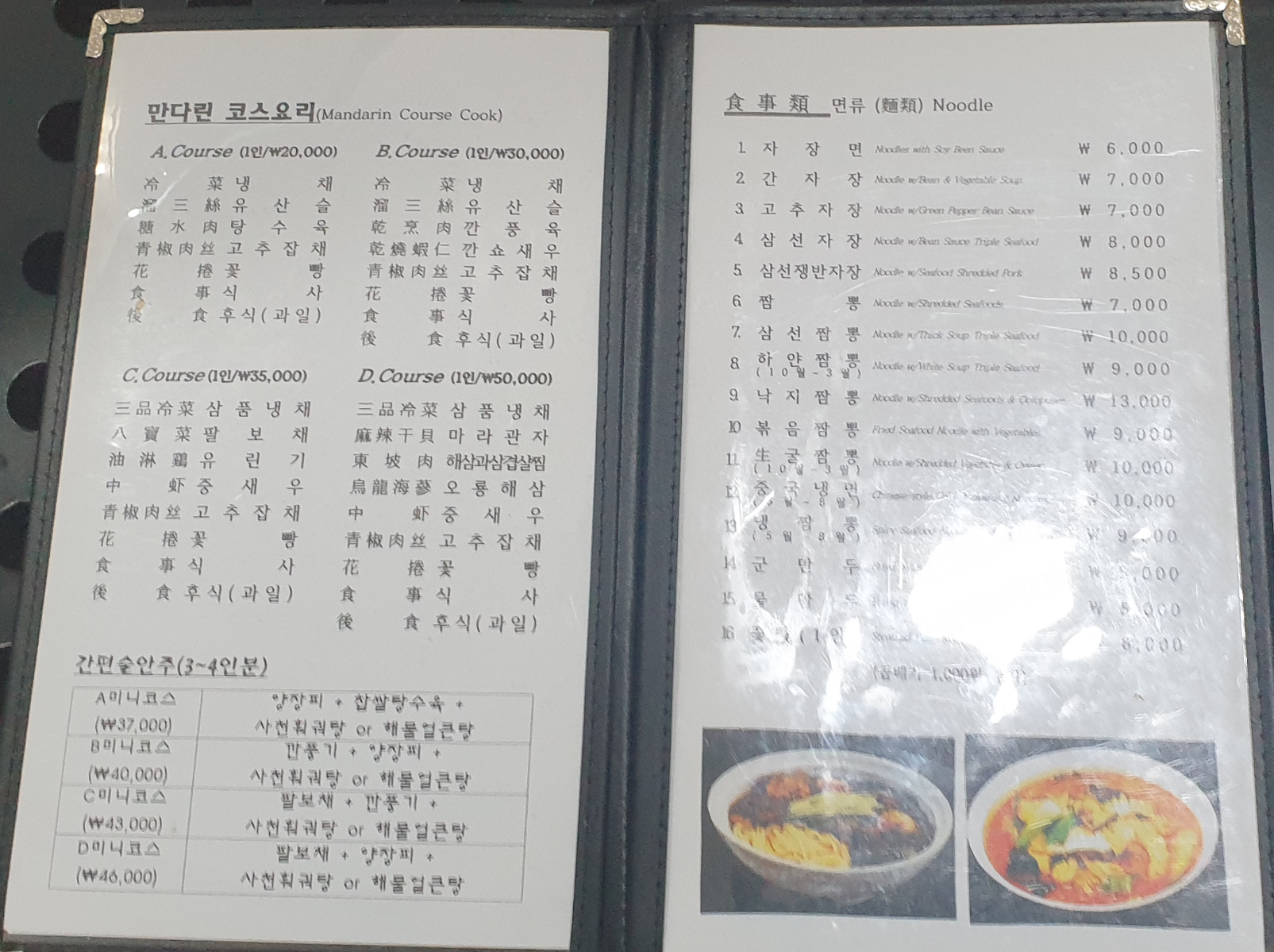 코스요리도 팔고 술안주 코스도 파네요. 면류도 다양한 짬뽕을 팔고 있습니다.