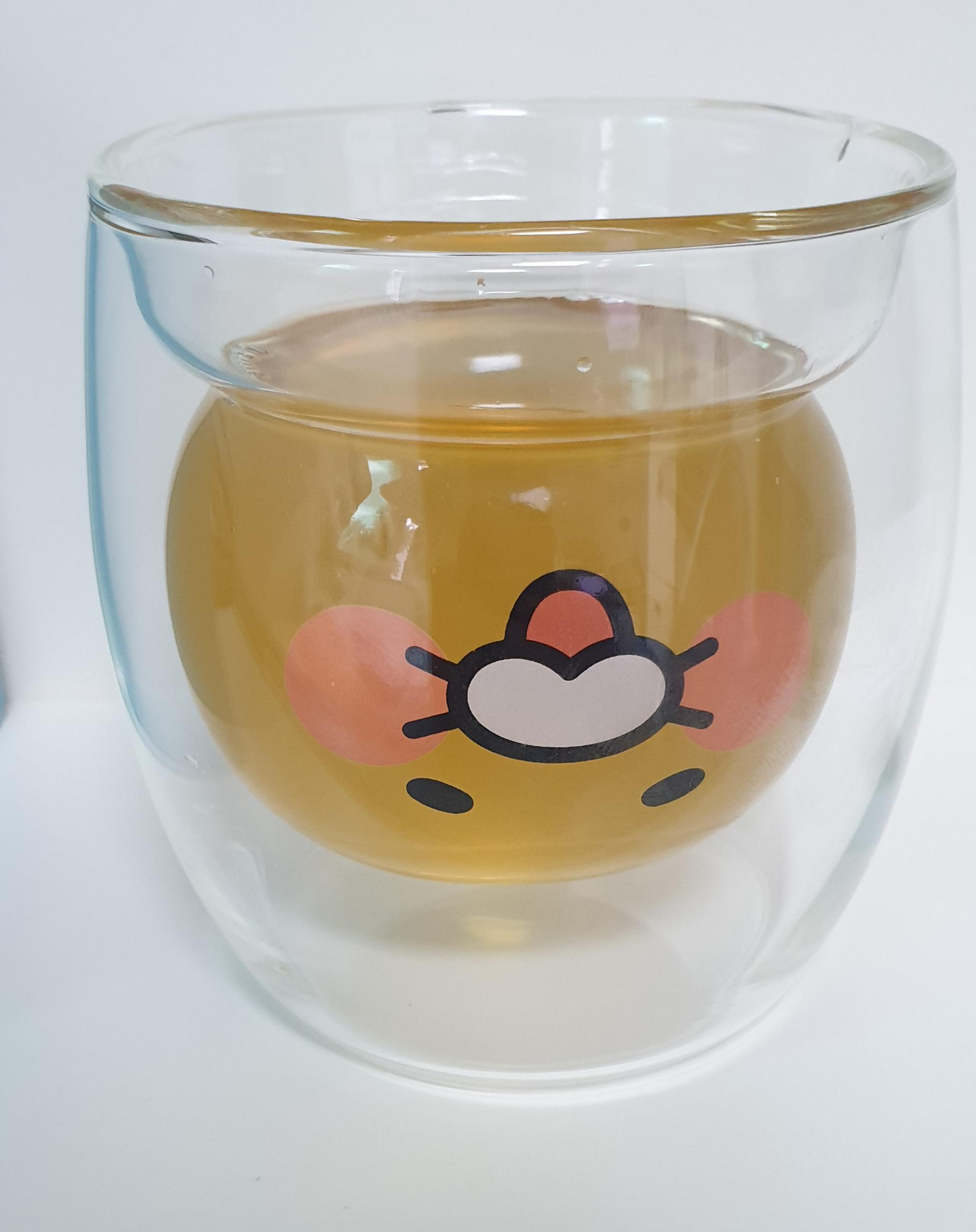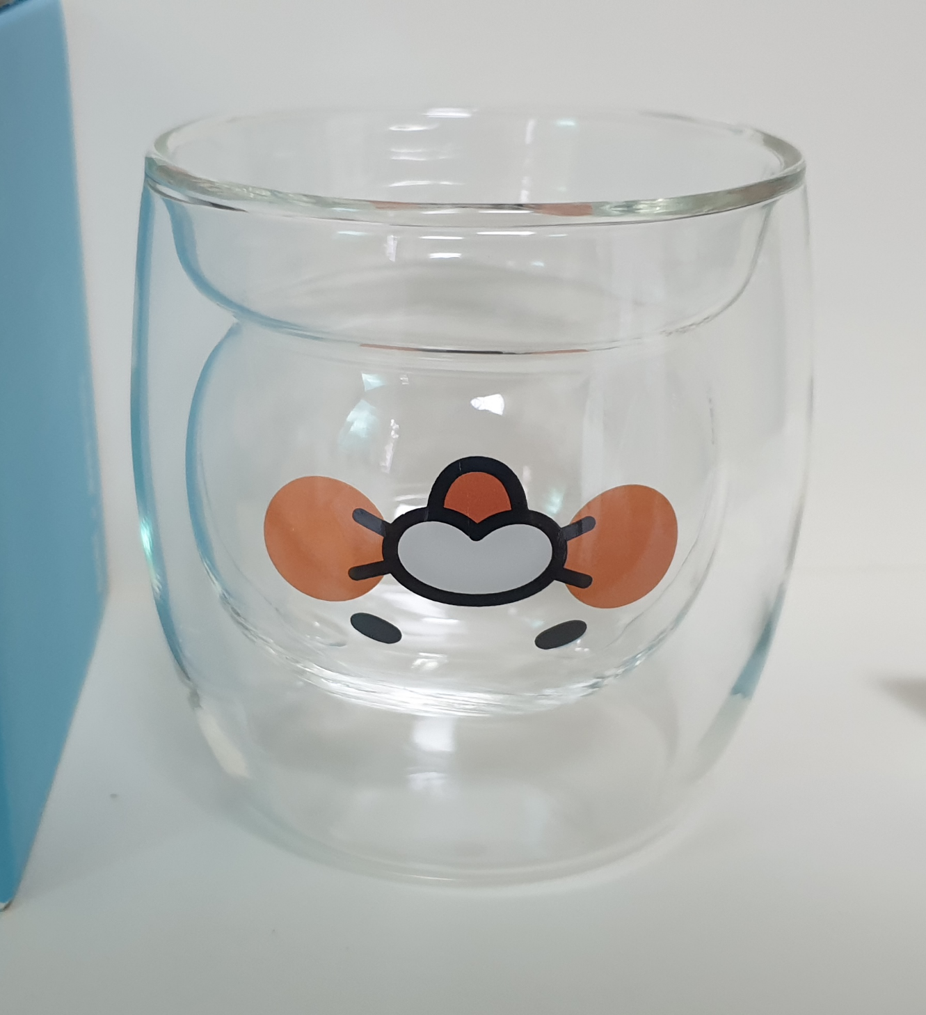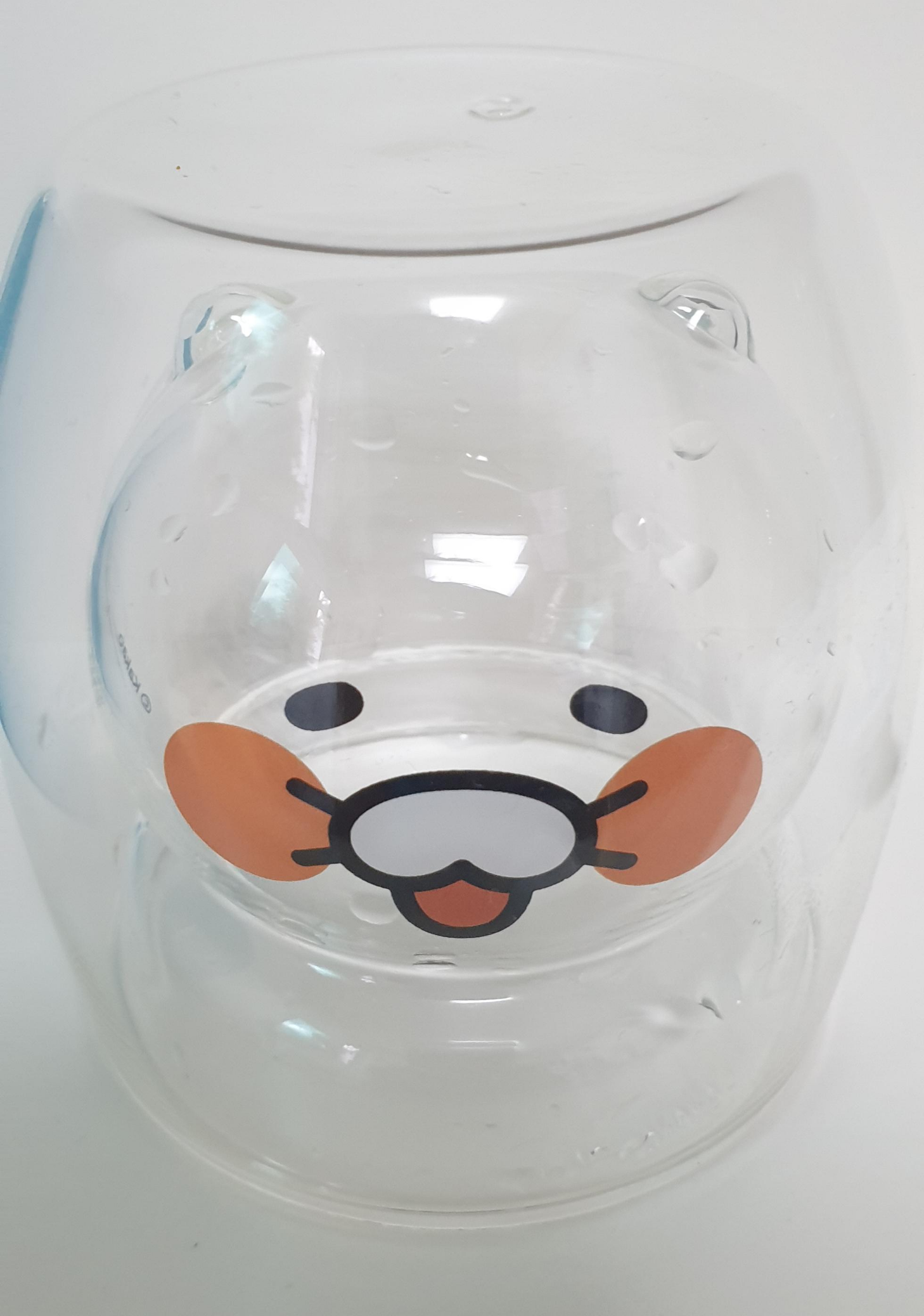 춘식이 이중내열 유리컵을 들어보고 처음 놀란 건 엄청 가볍다는 점과... 귀여운 점 그리고 컵으로 쓰기엔 너무 아쉬워 보이는 용량이었네요. 뒤집어서 보면 귀가 있는데 그냥 정자세로 보면 귀가 없는 것처럼 보입니다.