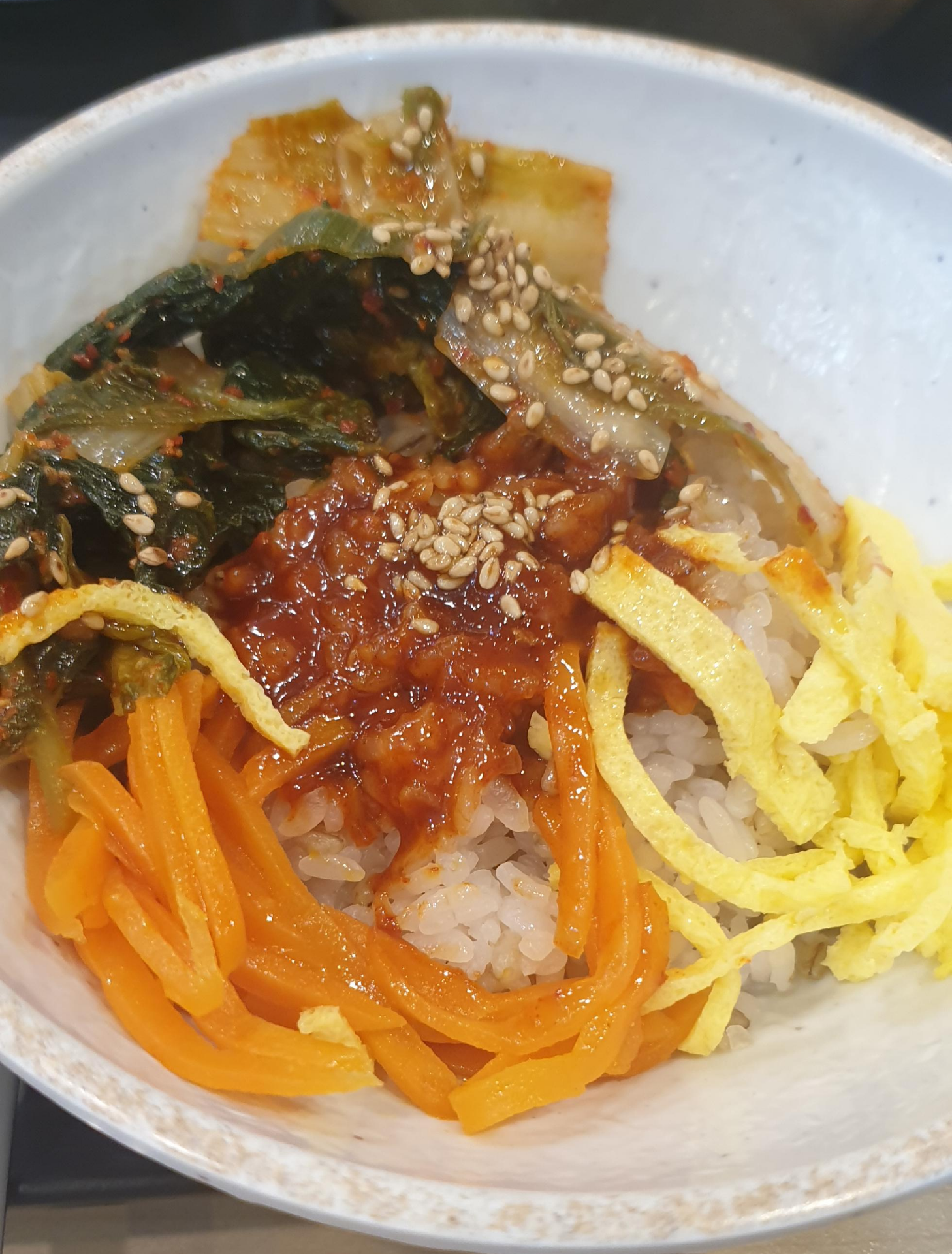 메뉴판에는 열무 보리비빔밥이지만 열무 대신 얼간이 김치이고 밥도 보리가 아니라 쌀밥이네요. 그래도 참기름 고소한 맛도 좋았고 비빔밥도 전체적으로 맛있었습니다.