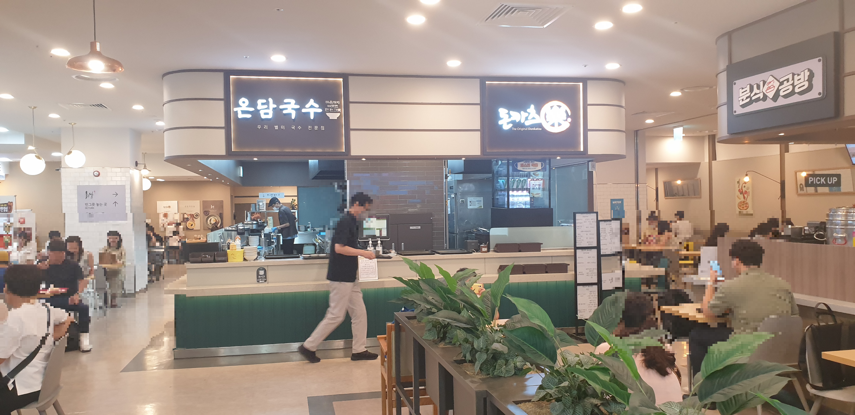 푸드코트에는 휘당, 온담 국수, 돈카츠 락, 분식 공방도 있고 롯데리아와 배스킨라빈스 틈새라면 그리고 이삭토스트와 에그 드롭도 위치하고 있습니다.