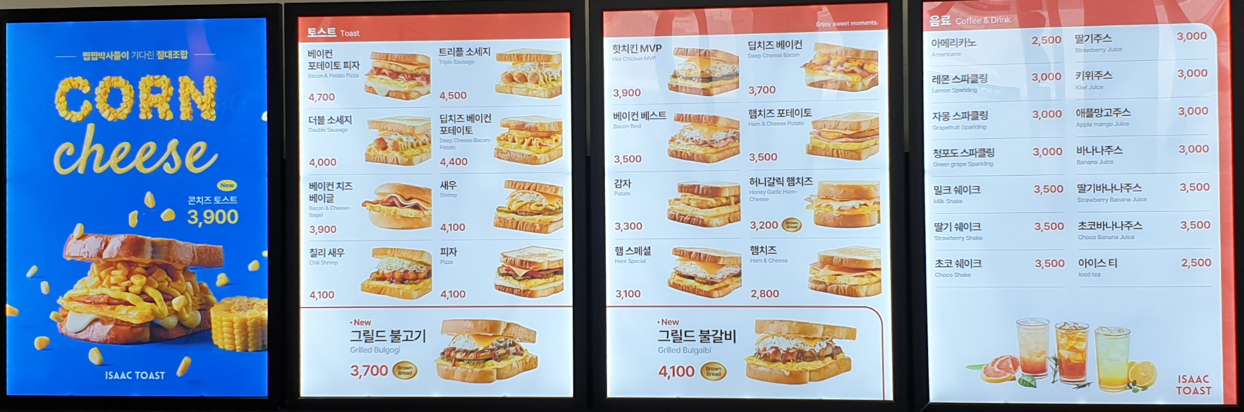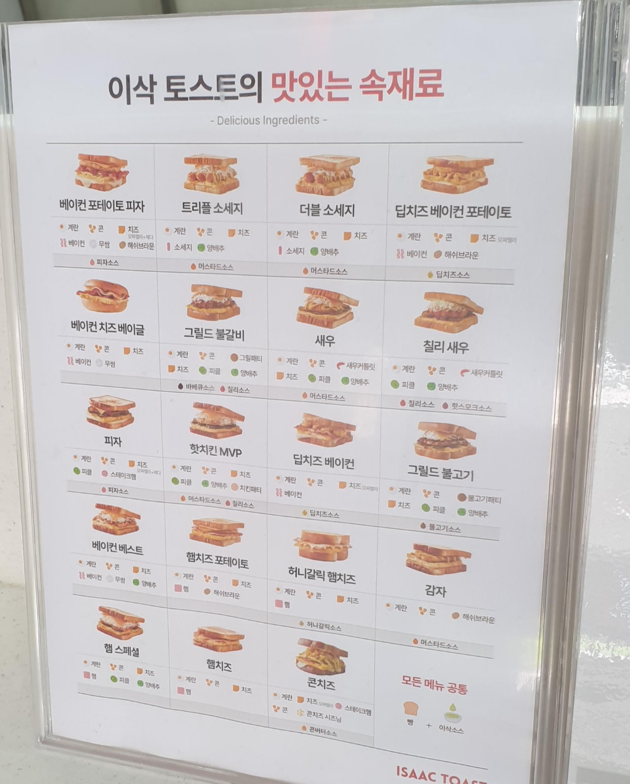 이삭토스트는 메뉴들 안에 속재료가 뭐가 들어가는지 다 안내가 되어있더군요.