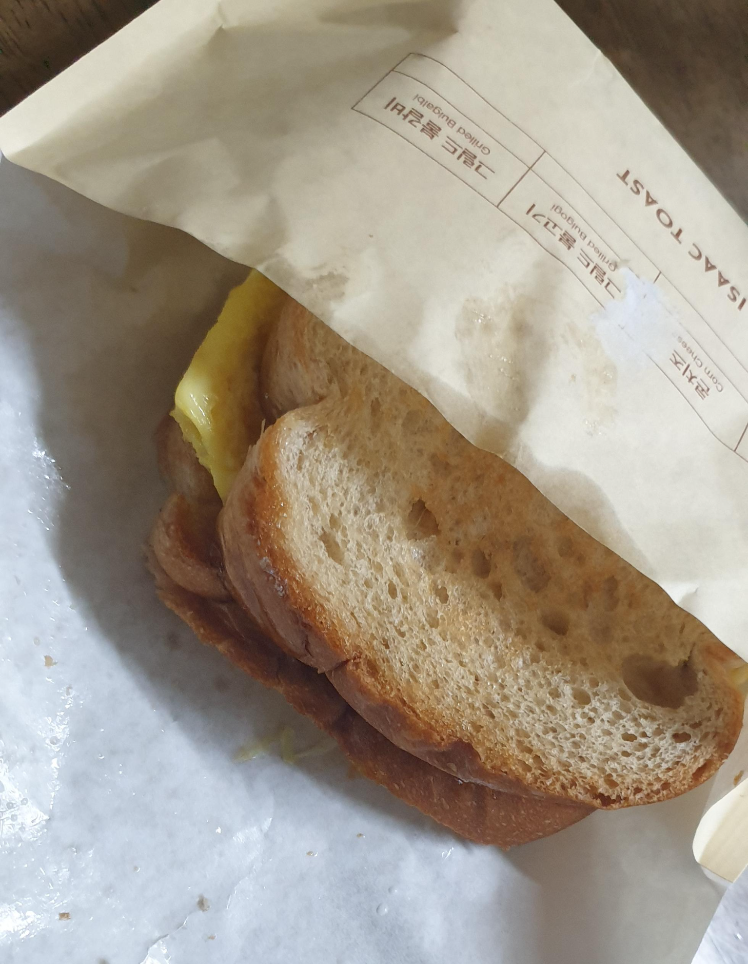 이삭토스트도 세트메뉴좀 있으면 좋겠네요. 뭔가 항상 토스트만 사고 커피는 다른 매머드 커피나 컴포즈 커피 같은 곳에서 사 먹는 느낌입니다. 저는 콘치즈 토스트(3,900원)을 포장했습니다.