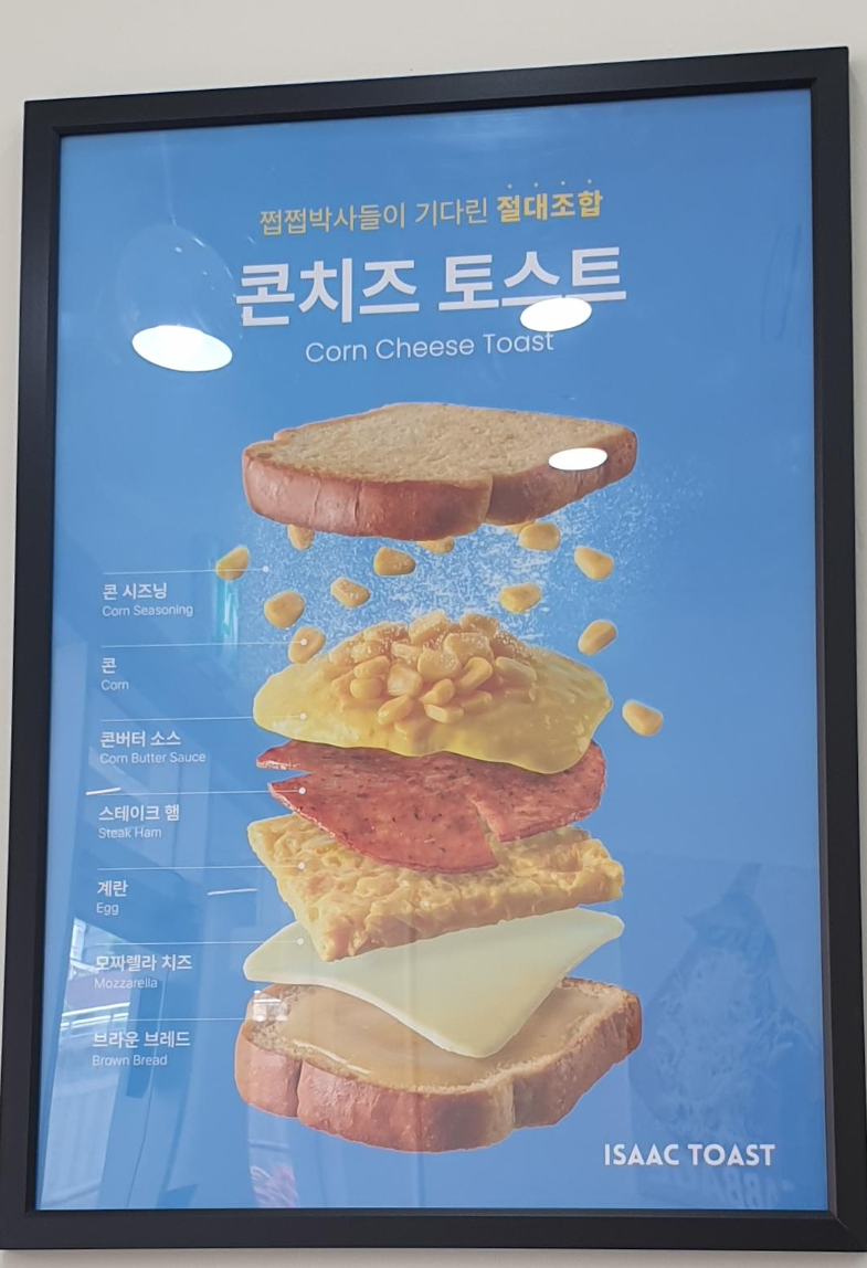 콘치즈 토스트 토핑도 액자에 걸려있네요. 야채가 옥수수만 들어간 조합입니다.