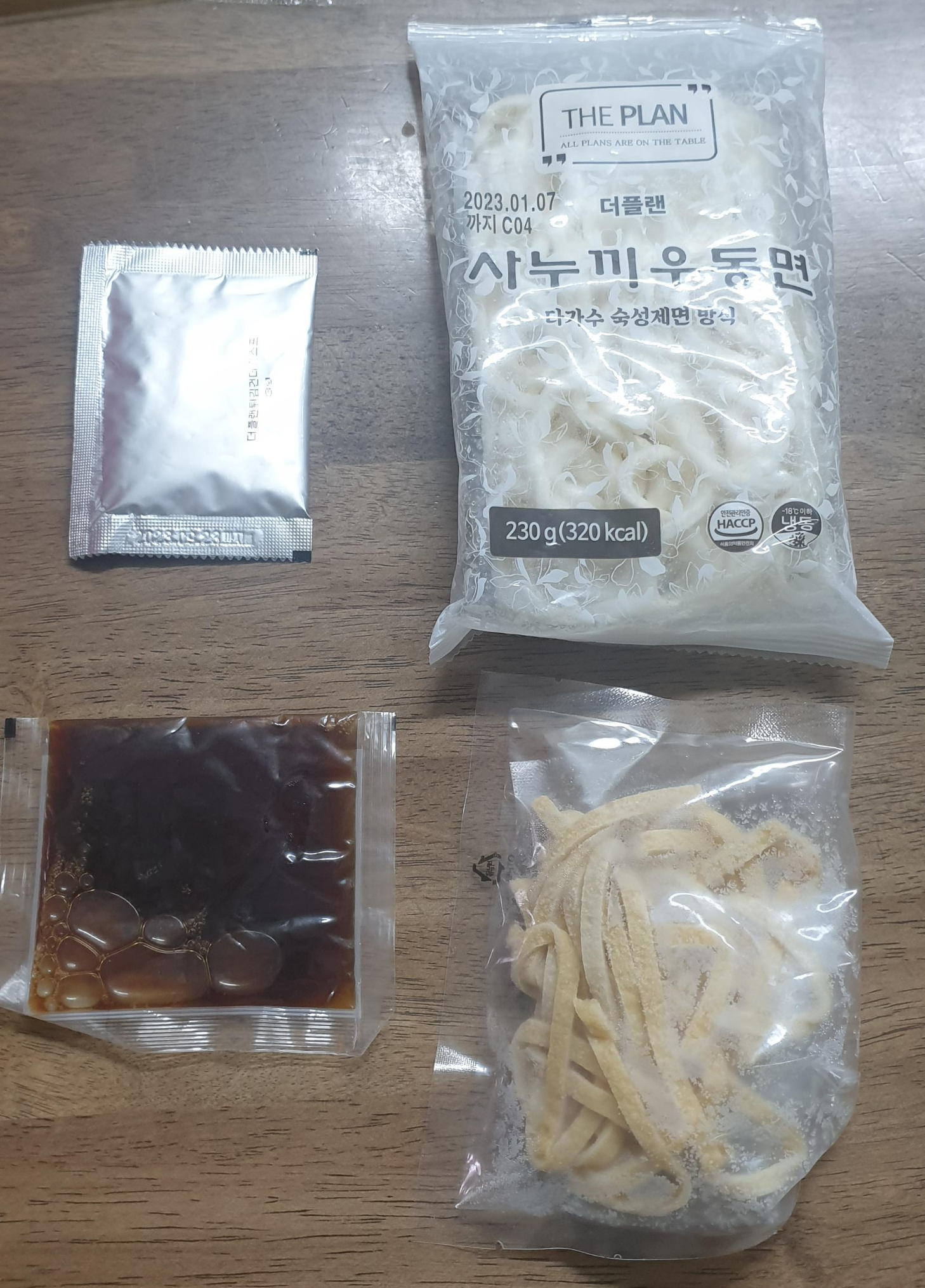 맛은 평범한 우동 맛이었습니다. 우동면하고 면이 둘 다 기다래서 먹기 편하더군요...