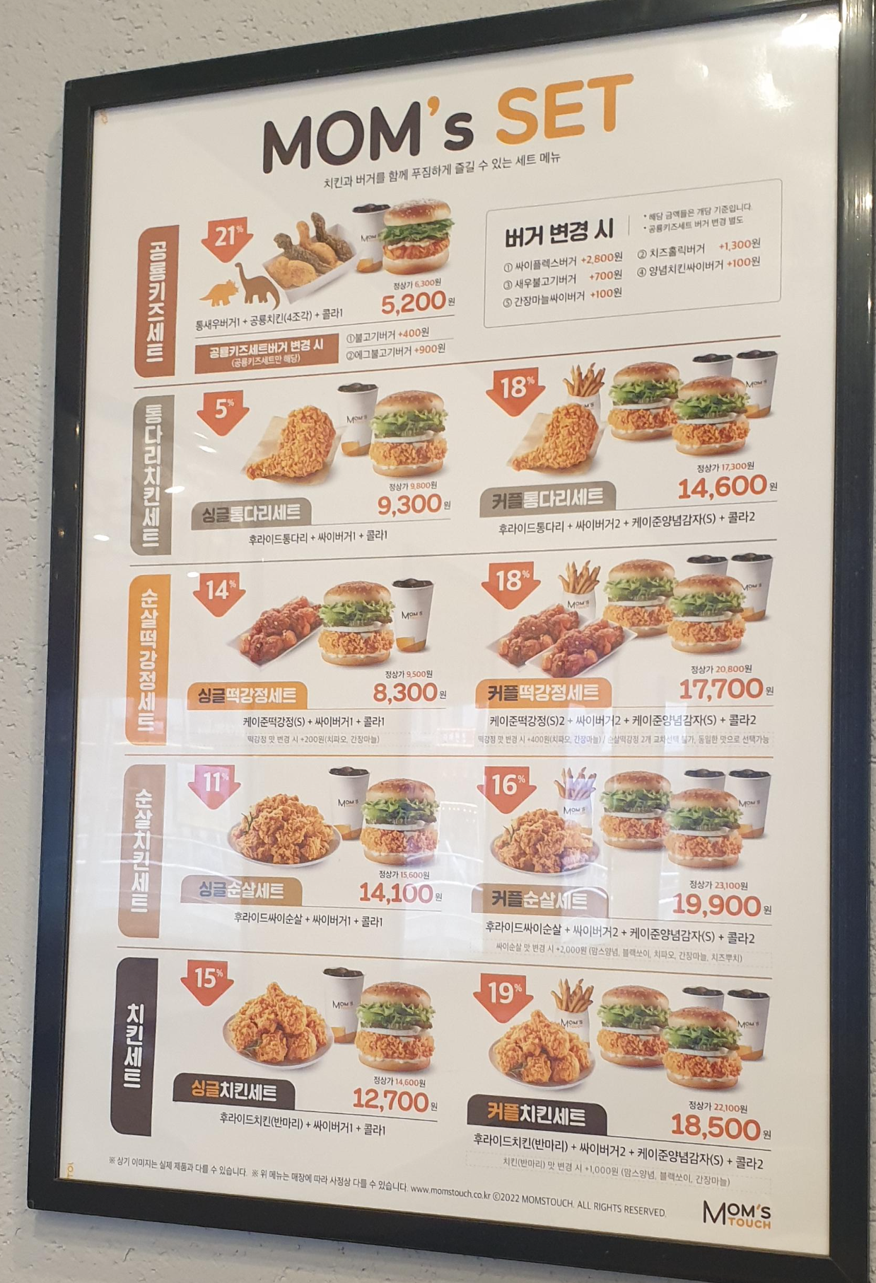 문정역 바로 근처 법조단지에 위치한 맘스터치에서 싱글 통다리 세트 (9,300원)을 먹었습니다.