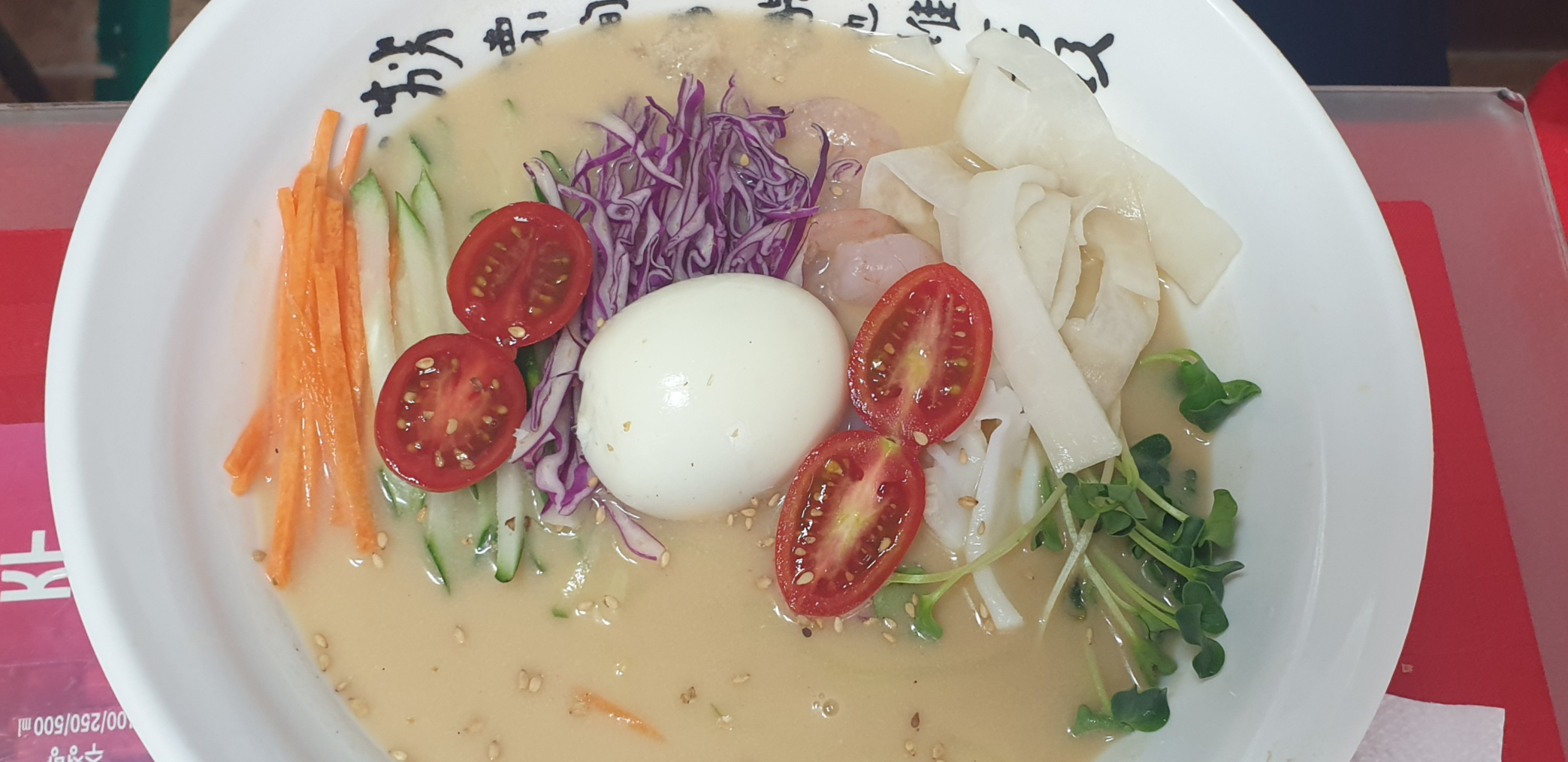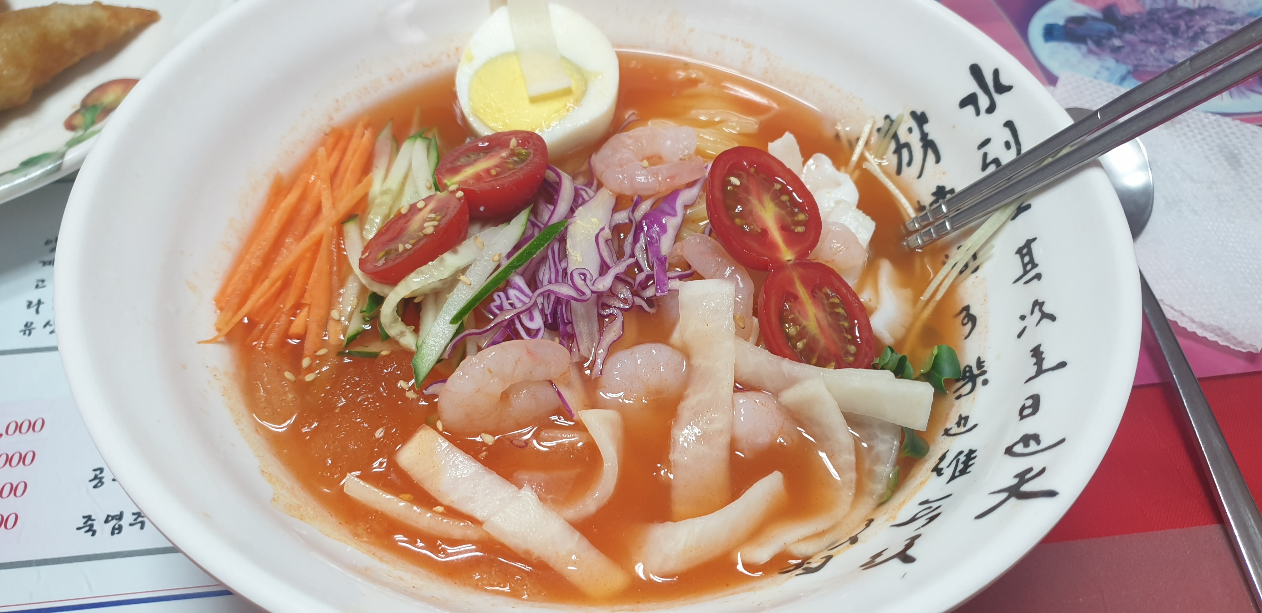 냉짬뽕은 토핑이나 면은 중국냉면과 동일했지만 국물이 빨간색이었습니다.