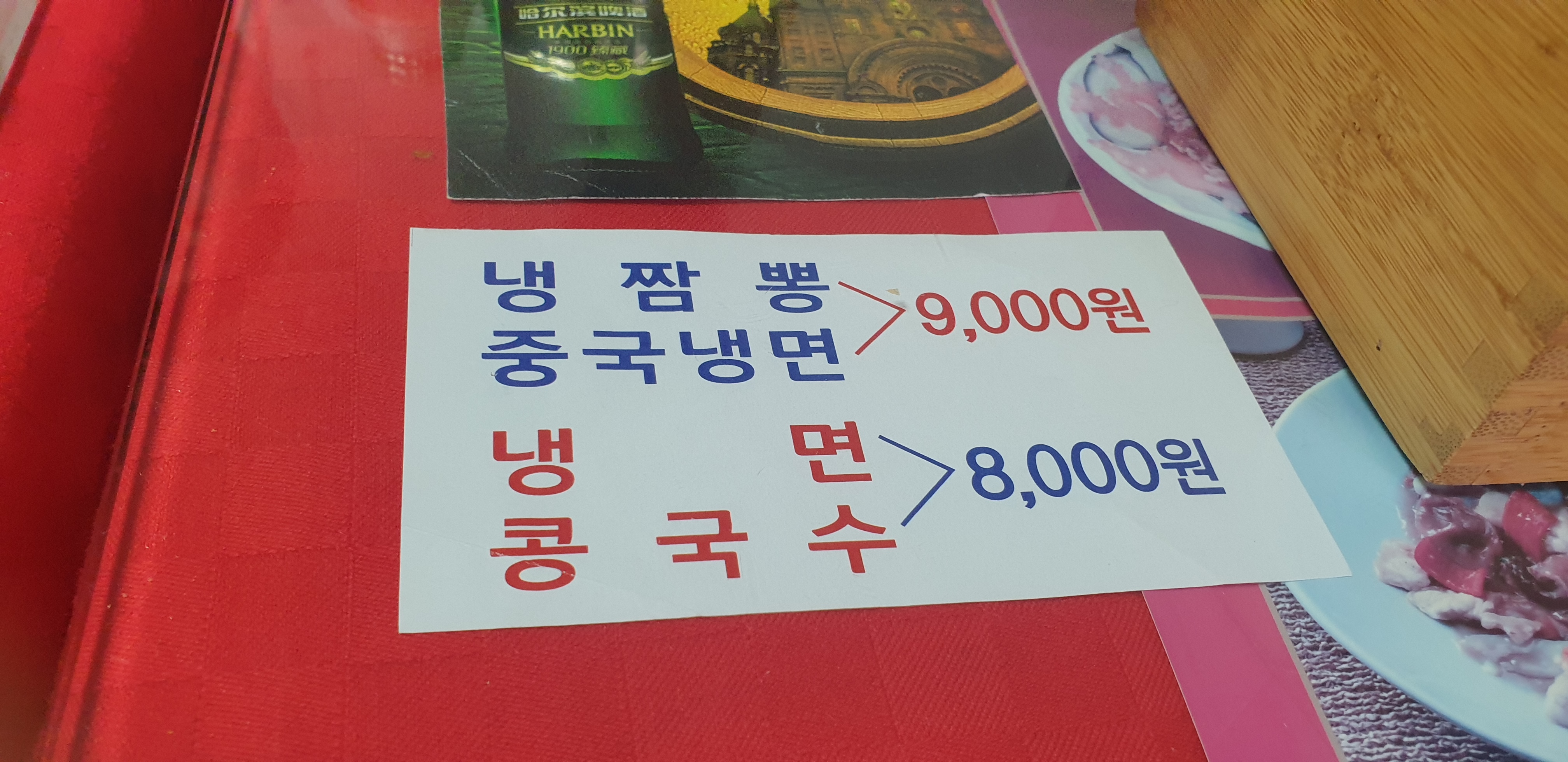 냉짬뽕, 중국냉면은 9000원, 냉면, 콩국수는 8000원이네요.