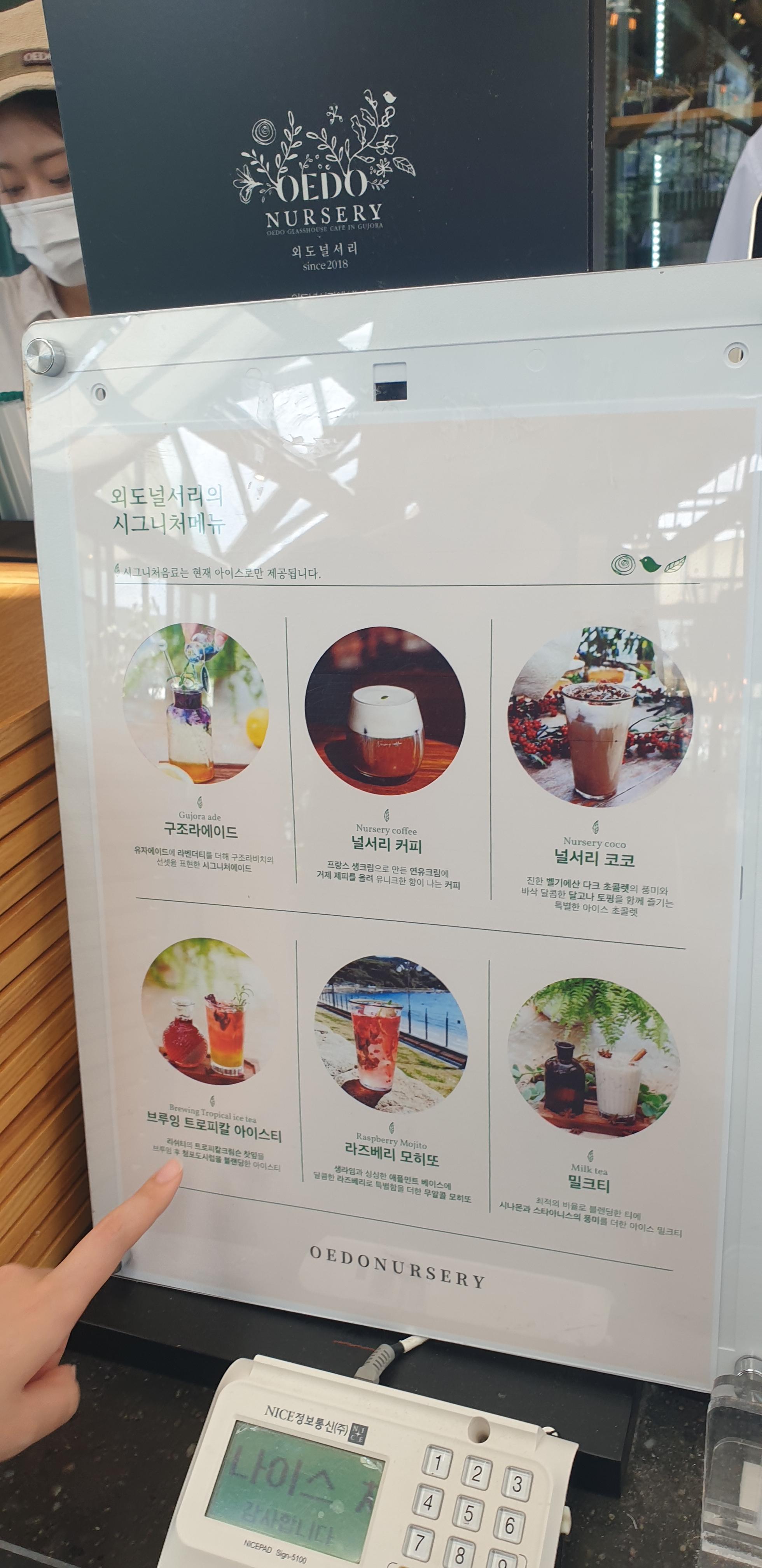배는 안고파서 저희는 브루잉 트로피칼 아이스티(8,000원), 아메리카노(6,000원), 카페라테(6,500원)만 주문했습니다.
