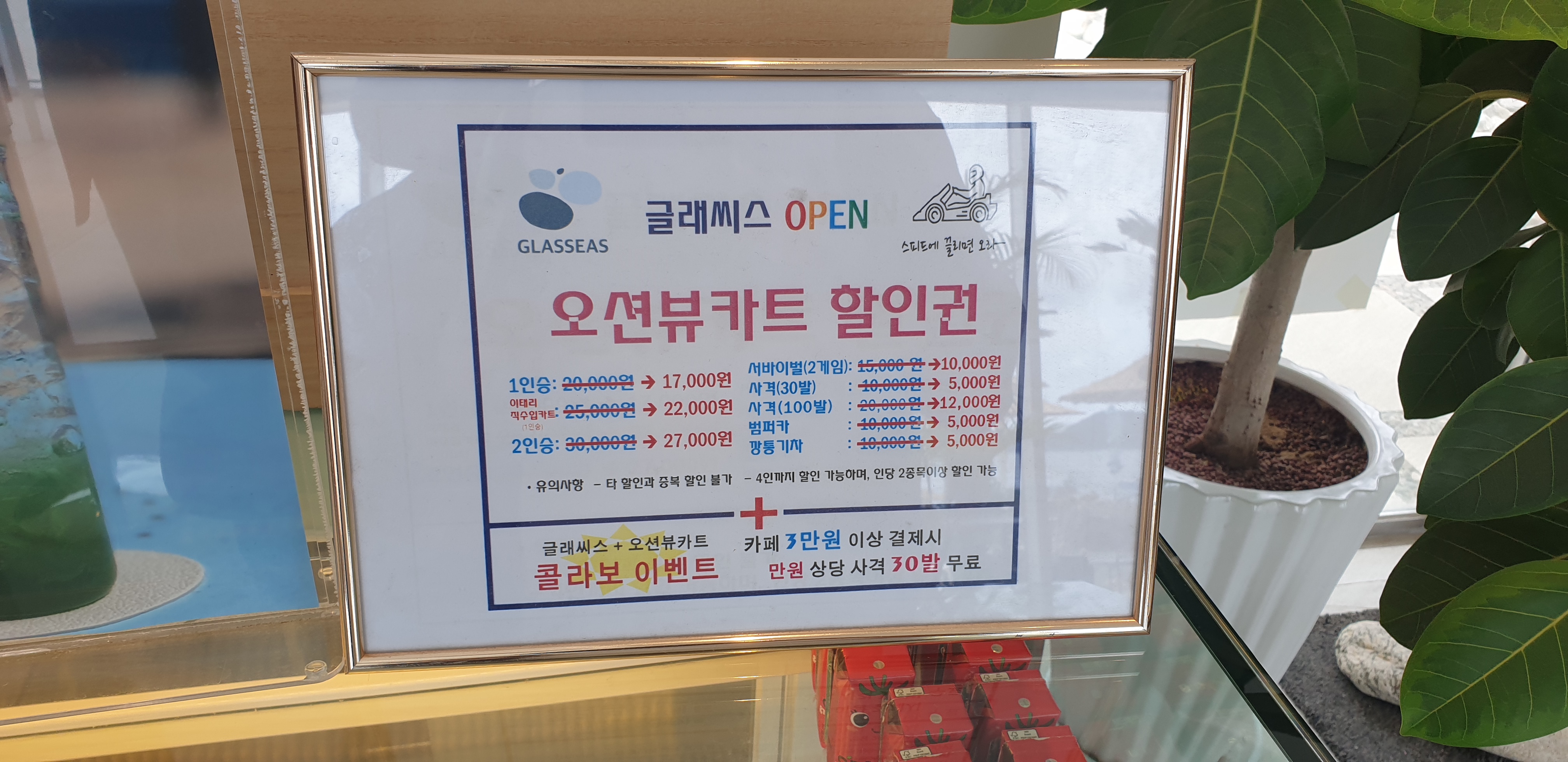 글래씨스 옆에 카트 타는 곳 하고 레이저 서바이벌장이 있었는데 카페를 들리고 방문하면 할인을 해준다고 하네요.