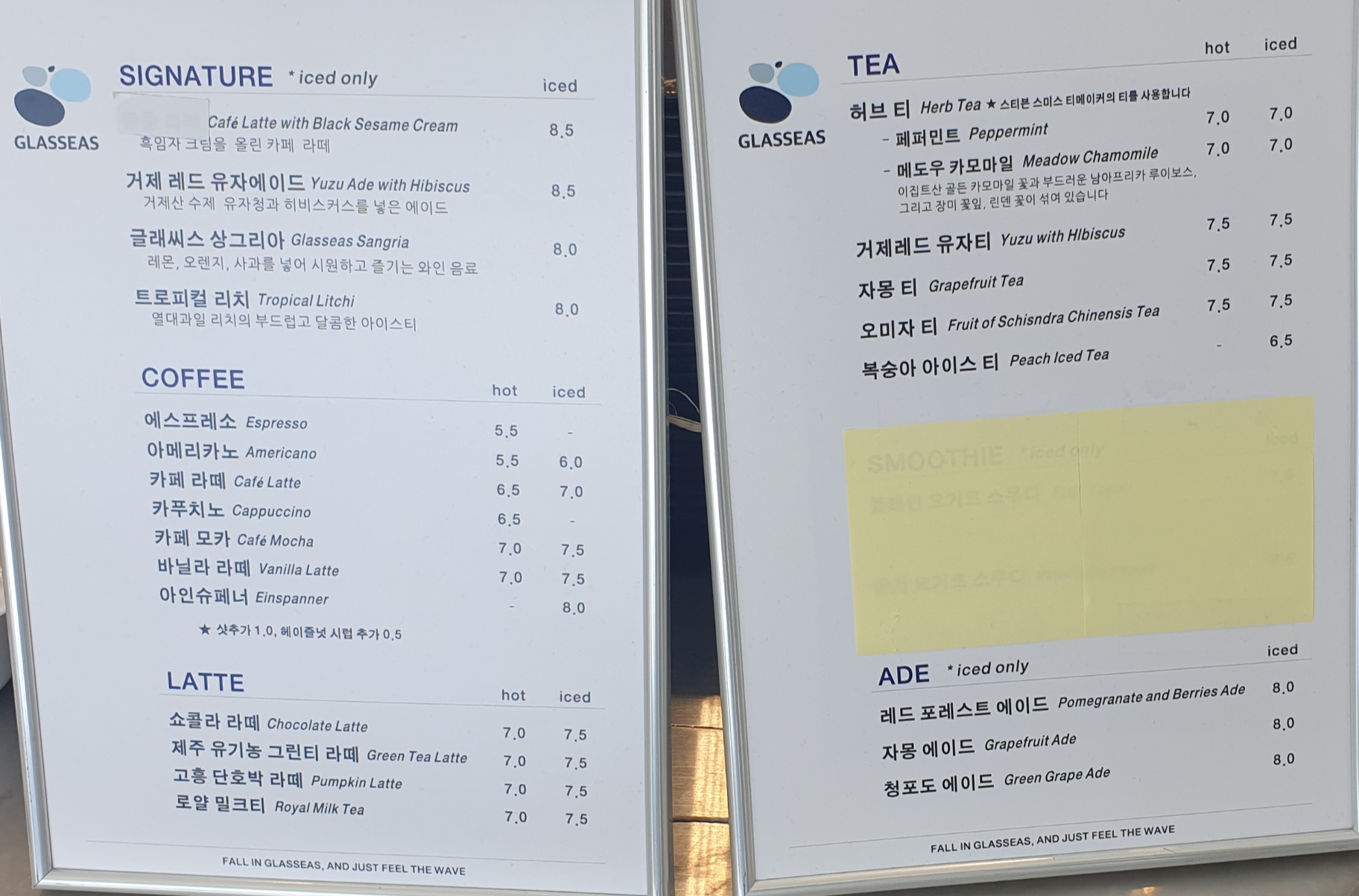 역시 뷰가 이쁘고 관광지에 있는 카페는 음료 가격이 약간 비싸군요.