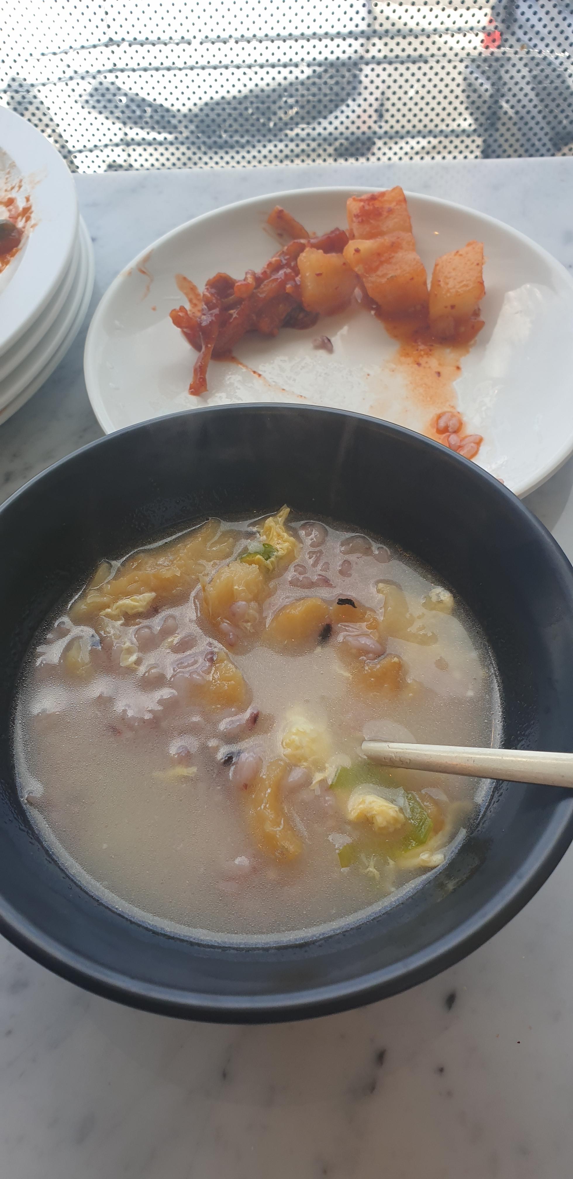 베이컨은 좀 너무 짜서 빵 하고 같이 먹는 게 아니면 못 먹겠더군요. 개인적으론 국에 밥 말아서 깍두기랑 먹은 게 제일 맛있었습니다. 창가 자리에서 먹으면 바다를 보면서 먹을 수 있네요.