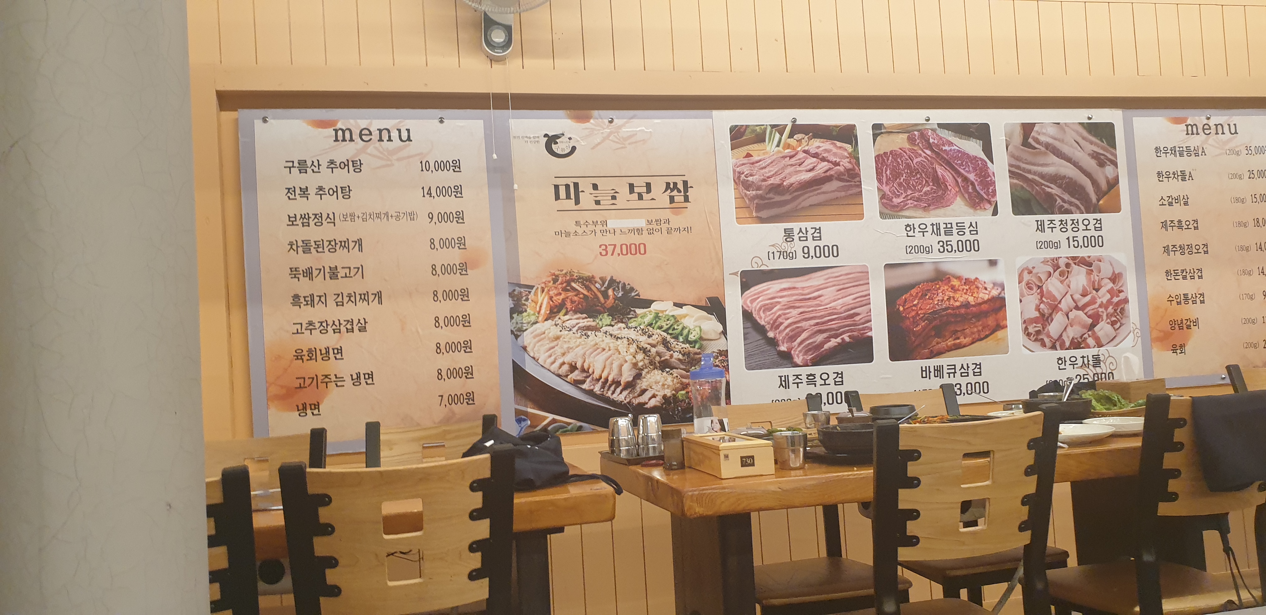 보쌈 정식(보쌈, 김치찌개, 공깃밥)은 9,000원으로 추어탕보다 저렴하네요.