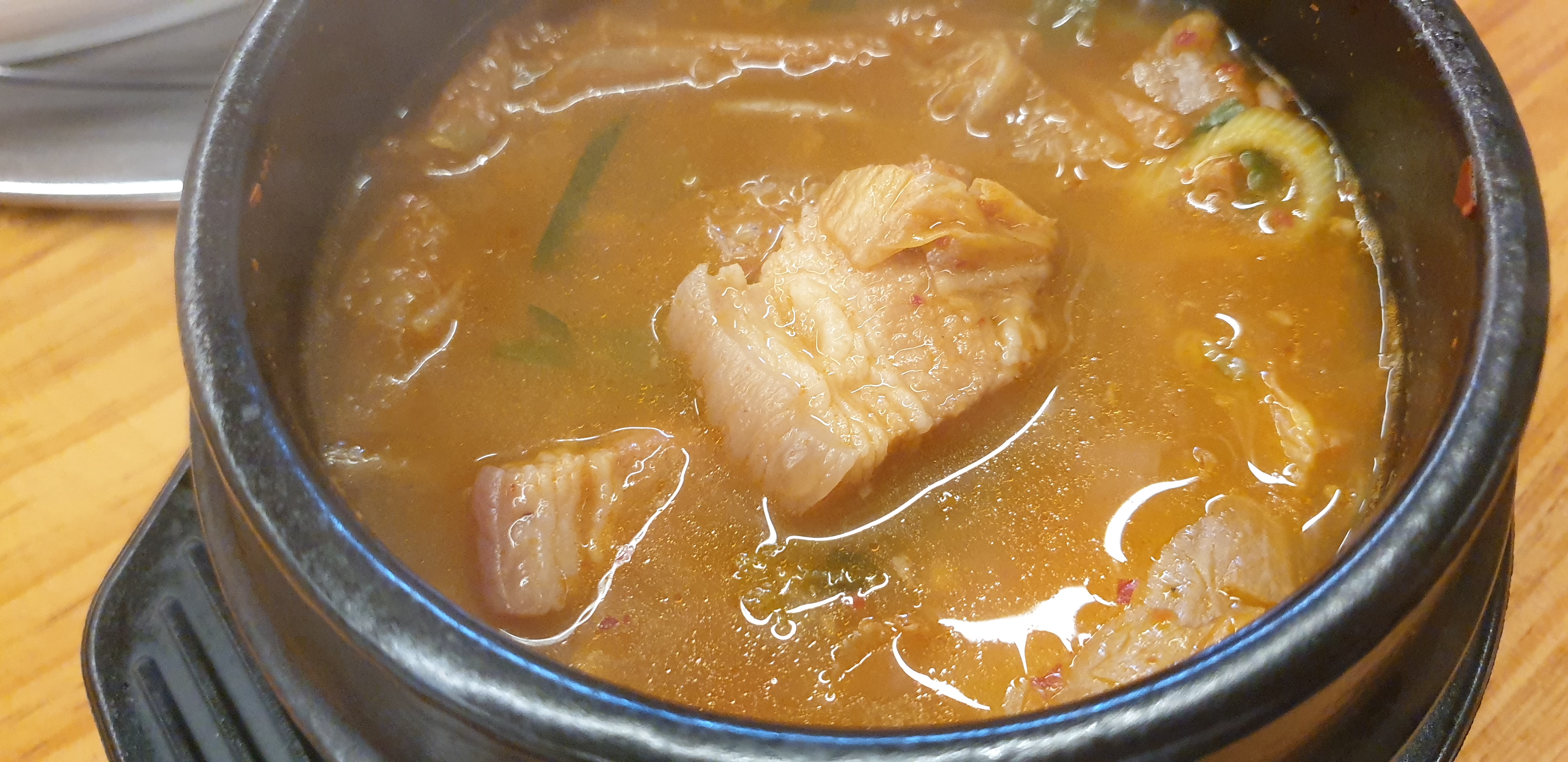 김치찌개 안에는 돼지고기가 2점~3점 정도 들어가는 것 같습니다.