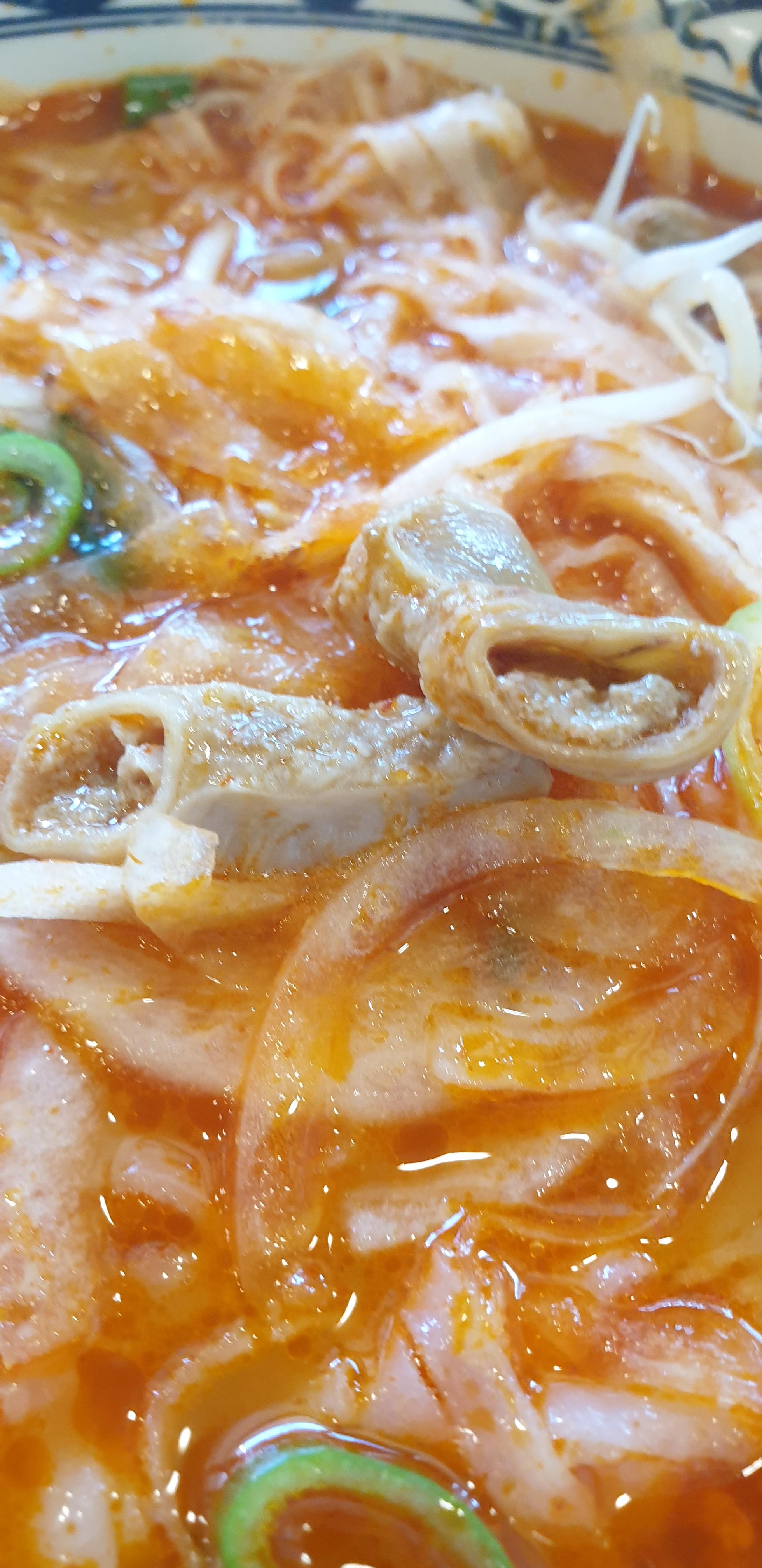 곱창과 고기가 들어있는데 곱창에 곱이 좀 많아서 그런 건지 돼지 냄새? 맛이 조금 강해서 돼지 잡내에 면역이 없는 사람은 싫어할 것 같았습니다. 저는 맛있게 먹었어요.
