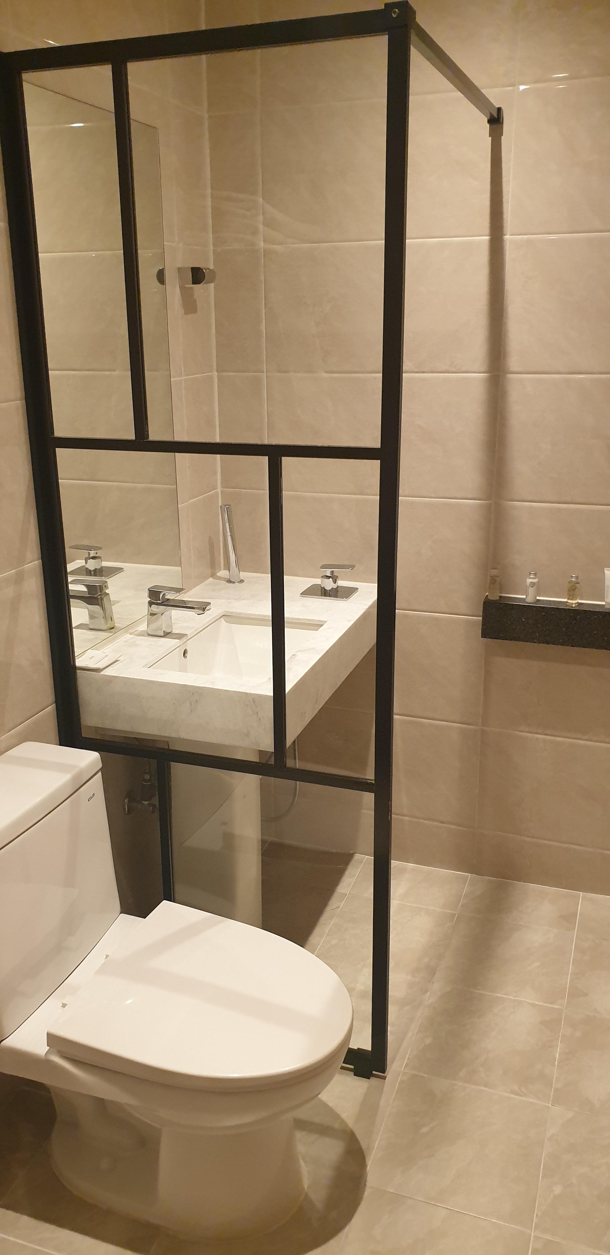 욕실은 아쉽네요. 욕조가 있는 방도 있고 없는 방도 있는 것 같지만... 샤워 부스랑 세면대가 분리가 안된 점은 아쉽습니다.