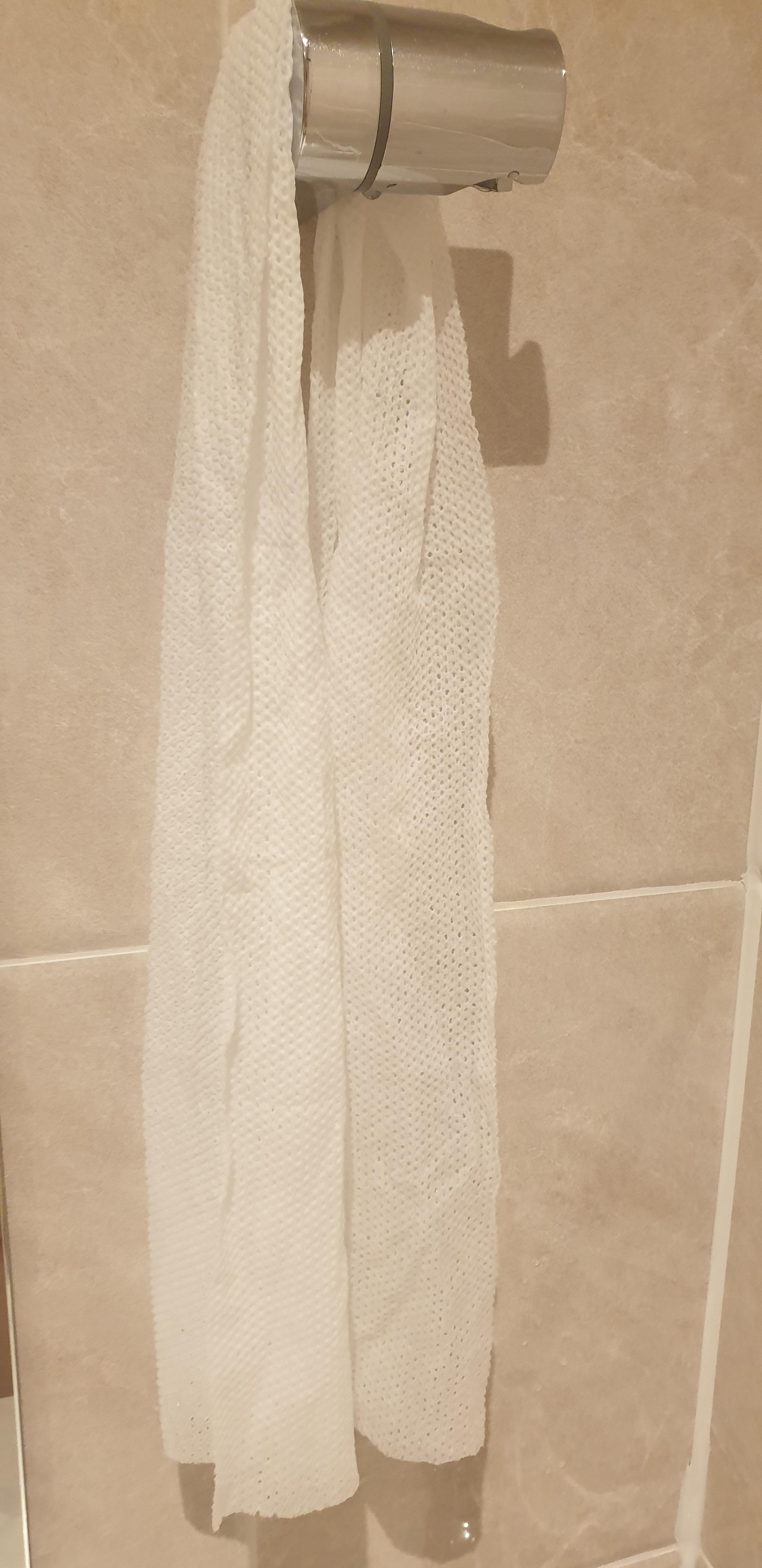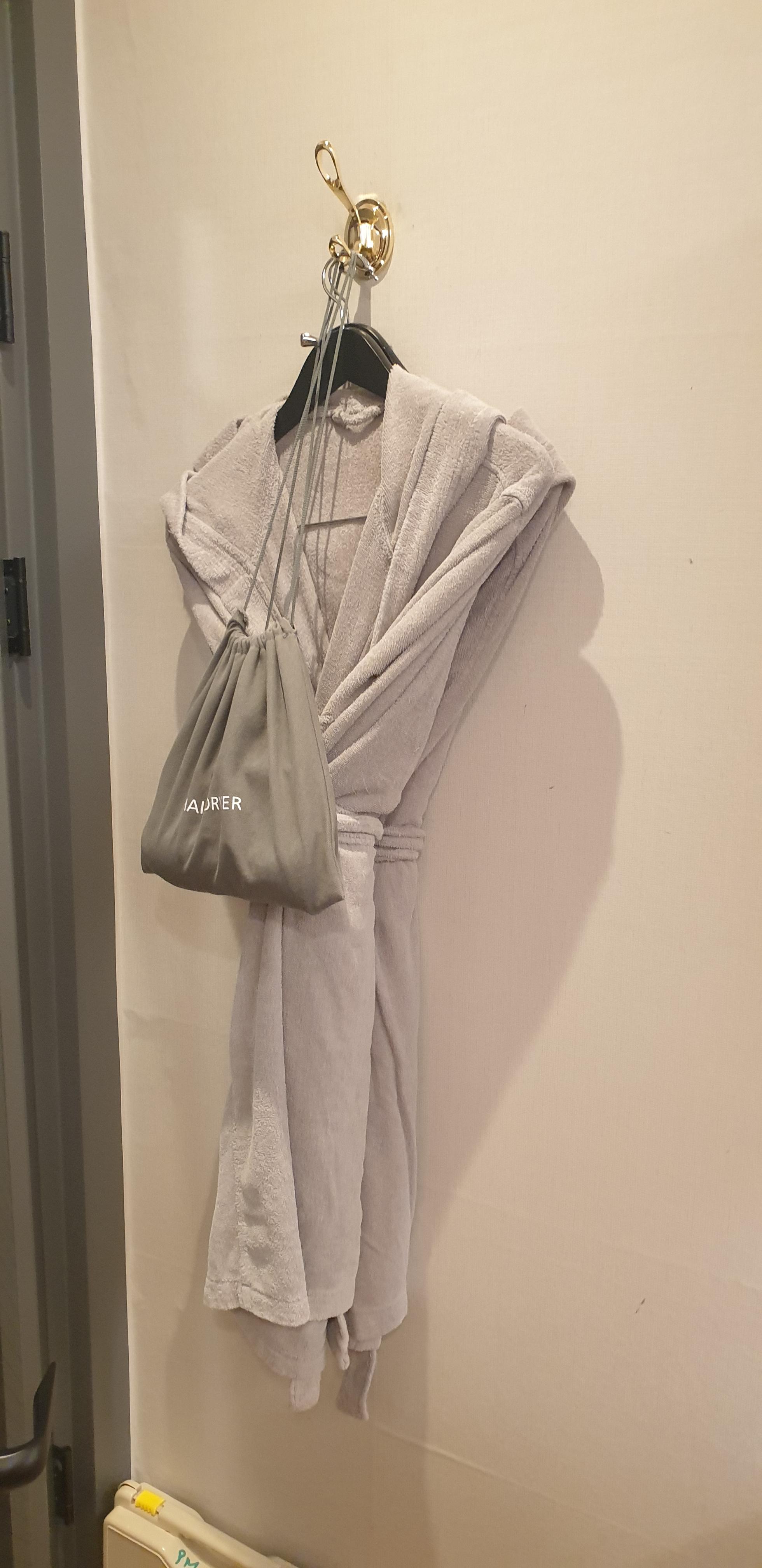 문 뒤에는 가운과 헤어드라이기가 있습니다.