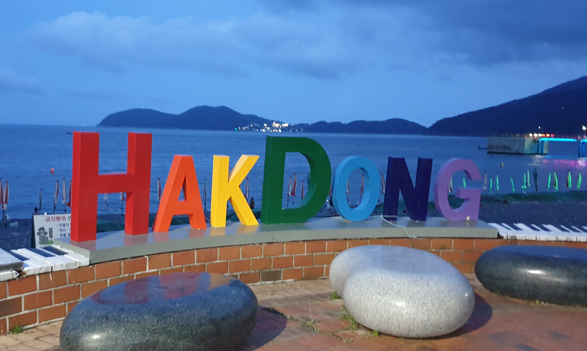 호텔 앞에는 학동 몽돌해변이 있습니다. 사실... 몽돌 해변은 그다지 놀기에 좋아 보이지는 않더군요. 저희 일행엔 아이들이 없었지만 만약 아이들이 논다면 몽돌해변보다는 역시 그냥 모래 해변이 좋은 것 같습니다.