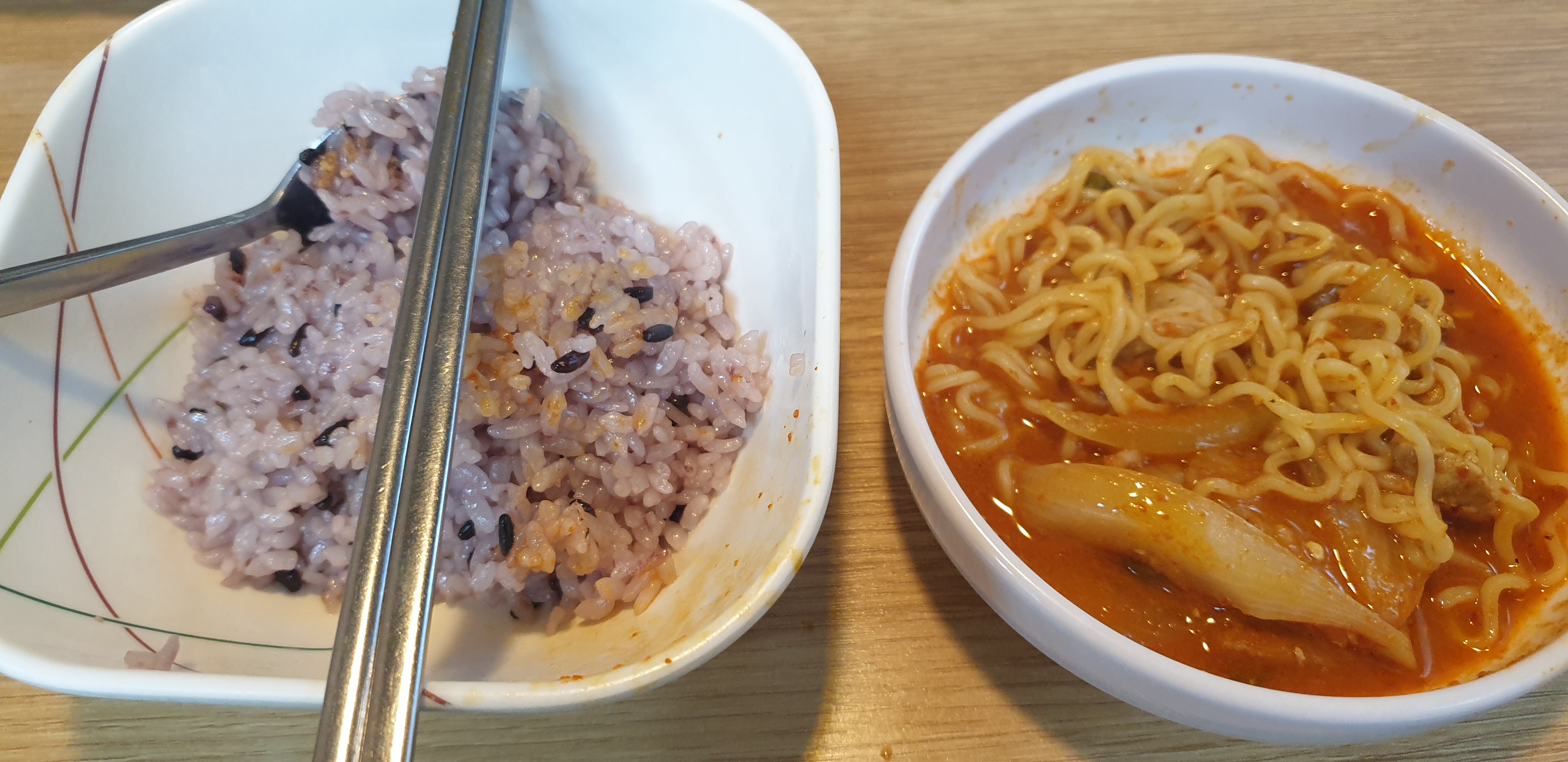 가장 맛있었던 건 역시 김치찌개에 추가한 라면사리였습니다.