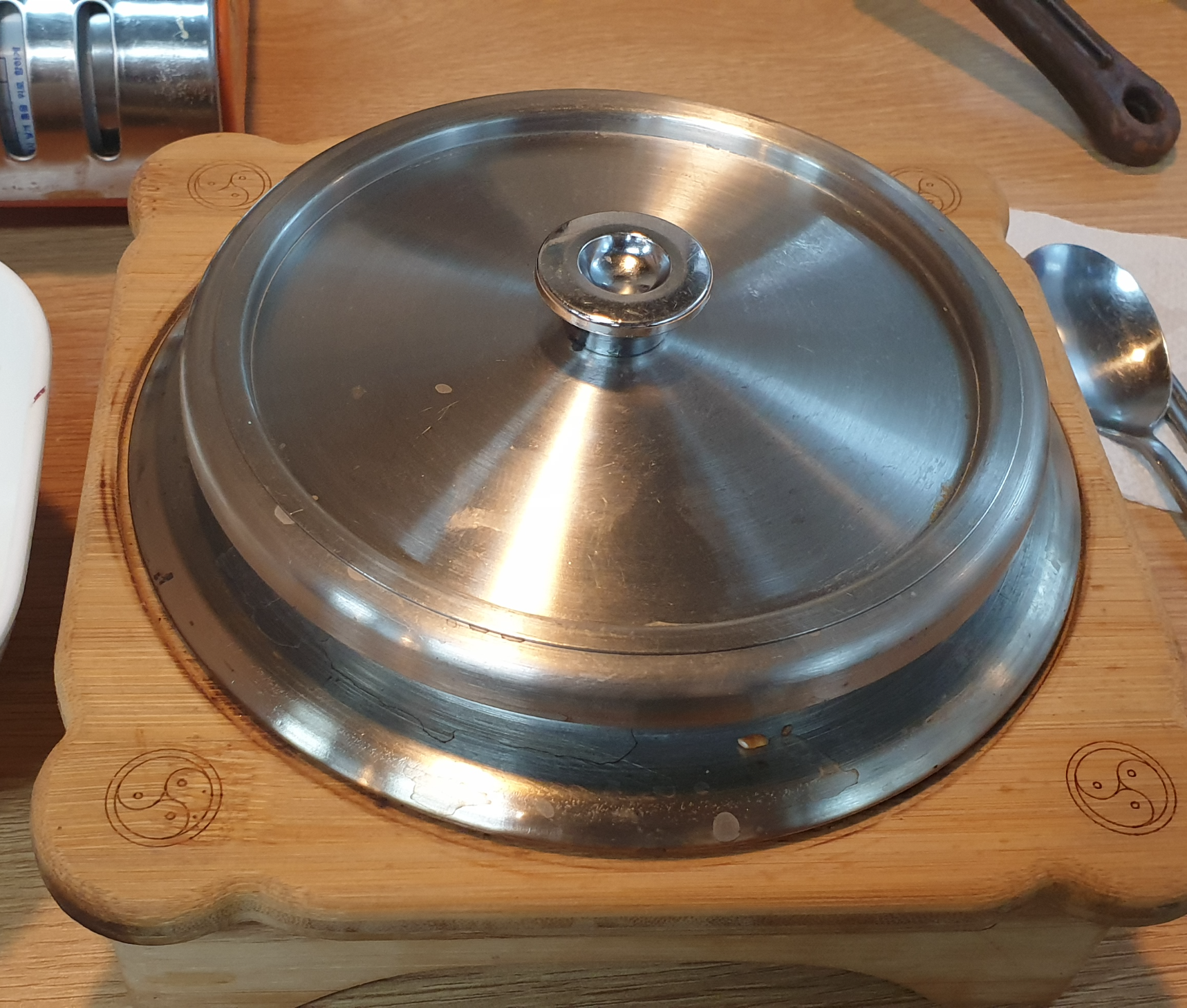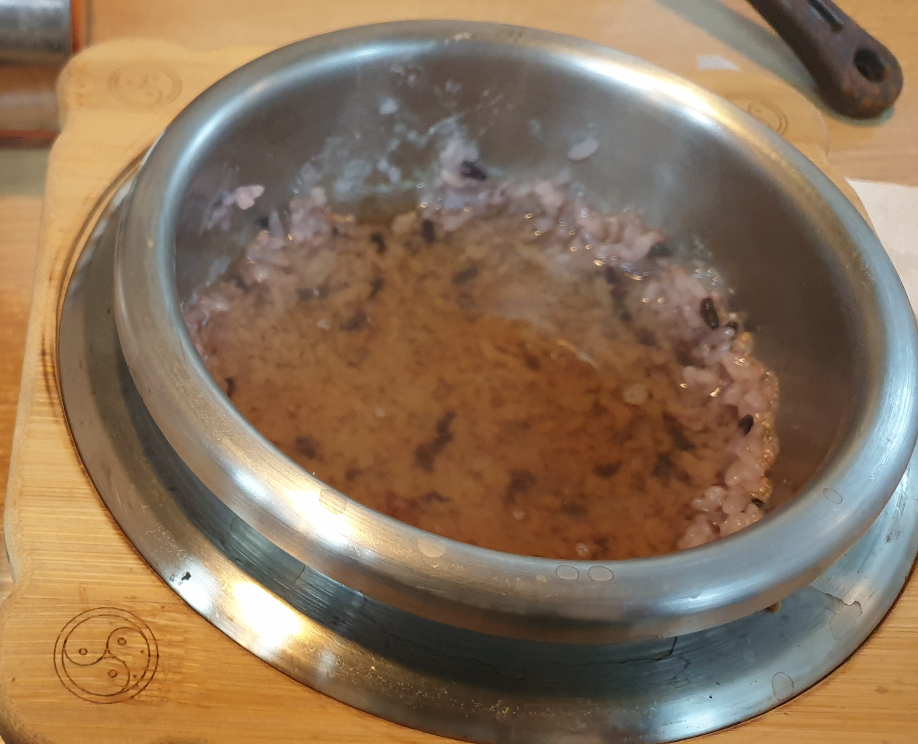 그리고 밥은 솥에 나오는데 일단 밥그릇에 밥을 옮겨 담고 따뜻한 물? 을 넣고 뚜껑을 덮었다가 밥을 다 먹고 마무리로 먹었는데 김치 올려 먹어도 맛있더군요.