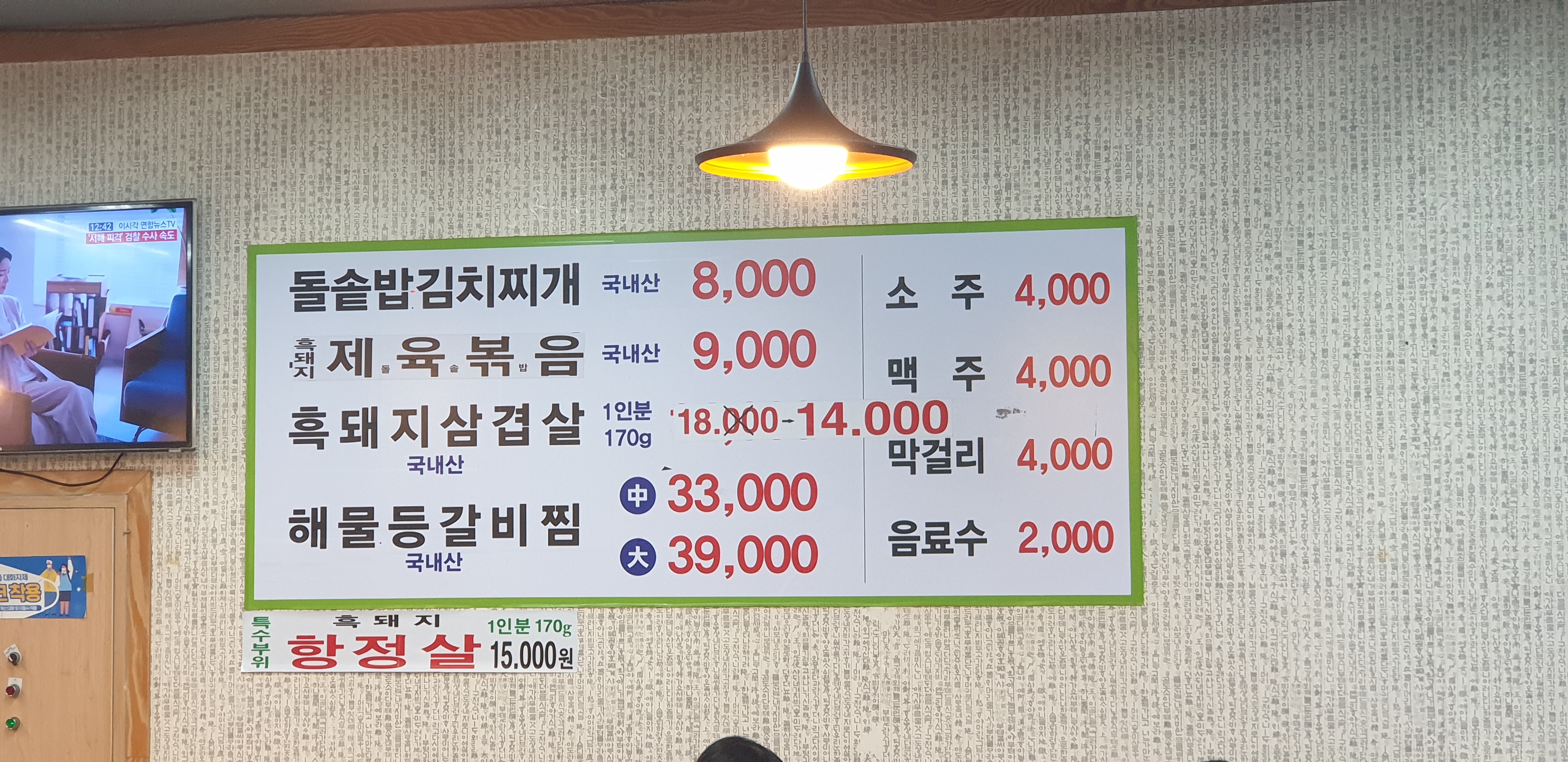돌솥밥김치찌개는 1인 분당 8,000원이었습니다. 2인분(16,000원)과 라면사리(1,000원)를 주문했습니다.
