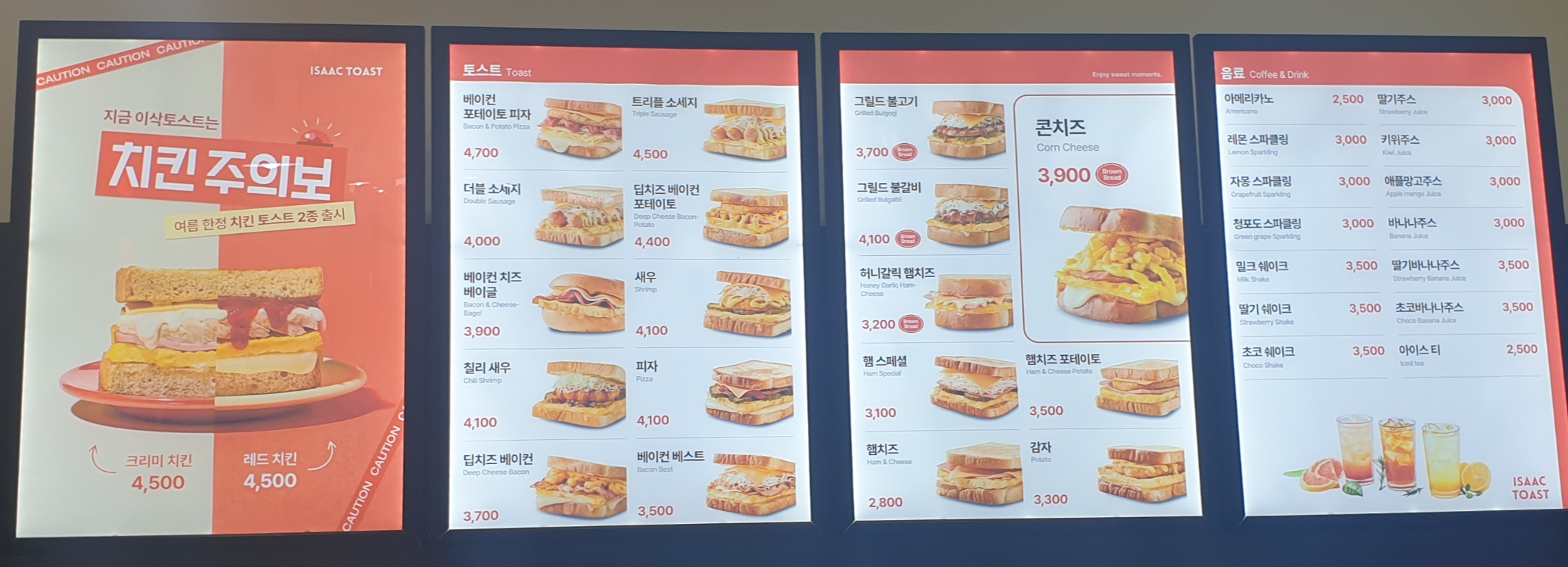 이삭토스트처럼 콜라 + 토스트 세트 같은 게 없는 곳이라서 더 그렇게 느껴지는 것 같습니다. 커피를 팔기는 하지만 이상하게 이삭토스트에선 음료를 먹어본 적이 없네요.