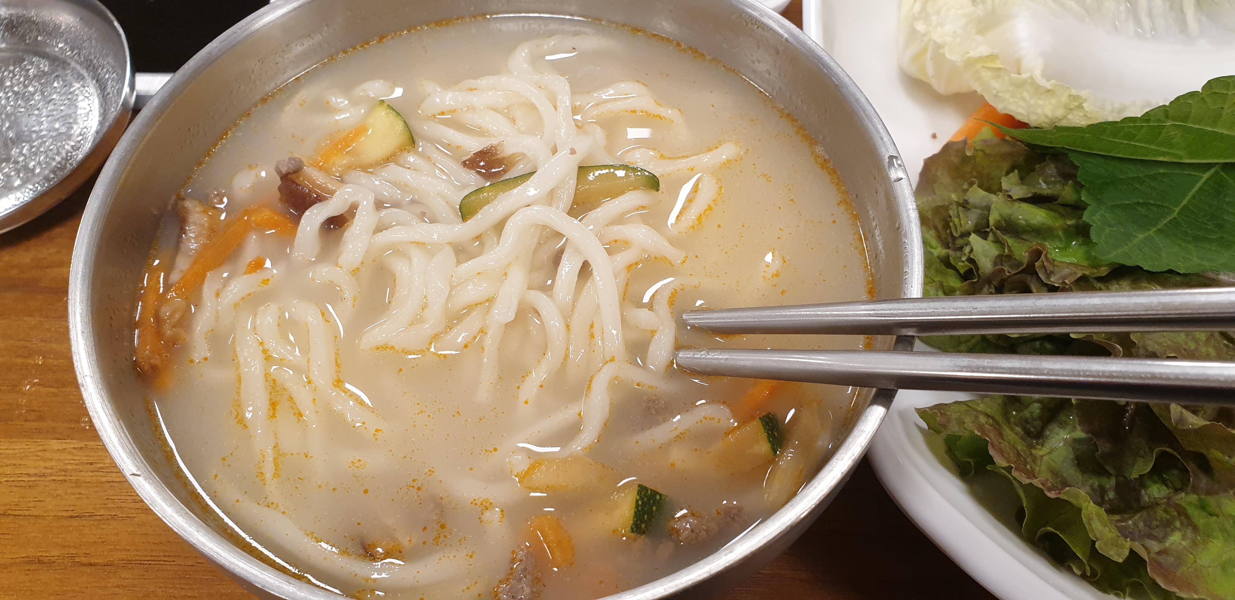 버섯, 호박, 당근, 고기가 들어가고 국물도 맛있어서 칼국수는 맛있었습니다.