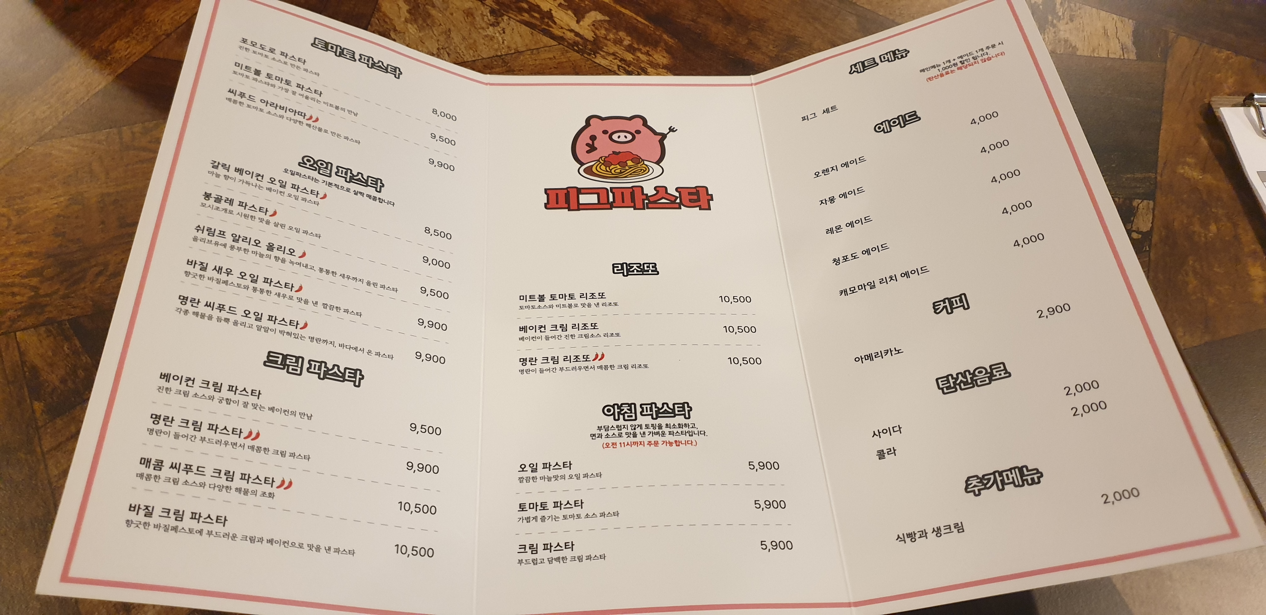메뉴판에 전에 못 봤던 아침 파스타라는 메뉴가 추가가 되었네요.
