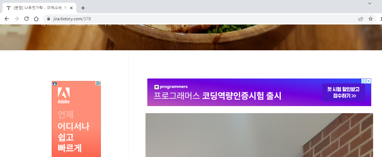 티스토리에서 새 글을 작성하고 글을 확인하는데 광고가 안 나오더군요.